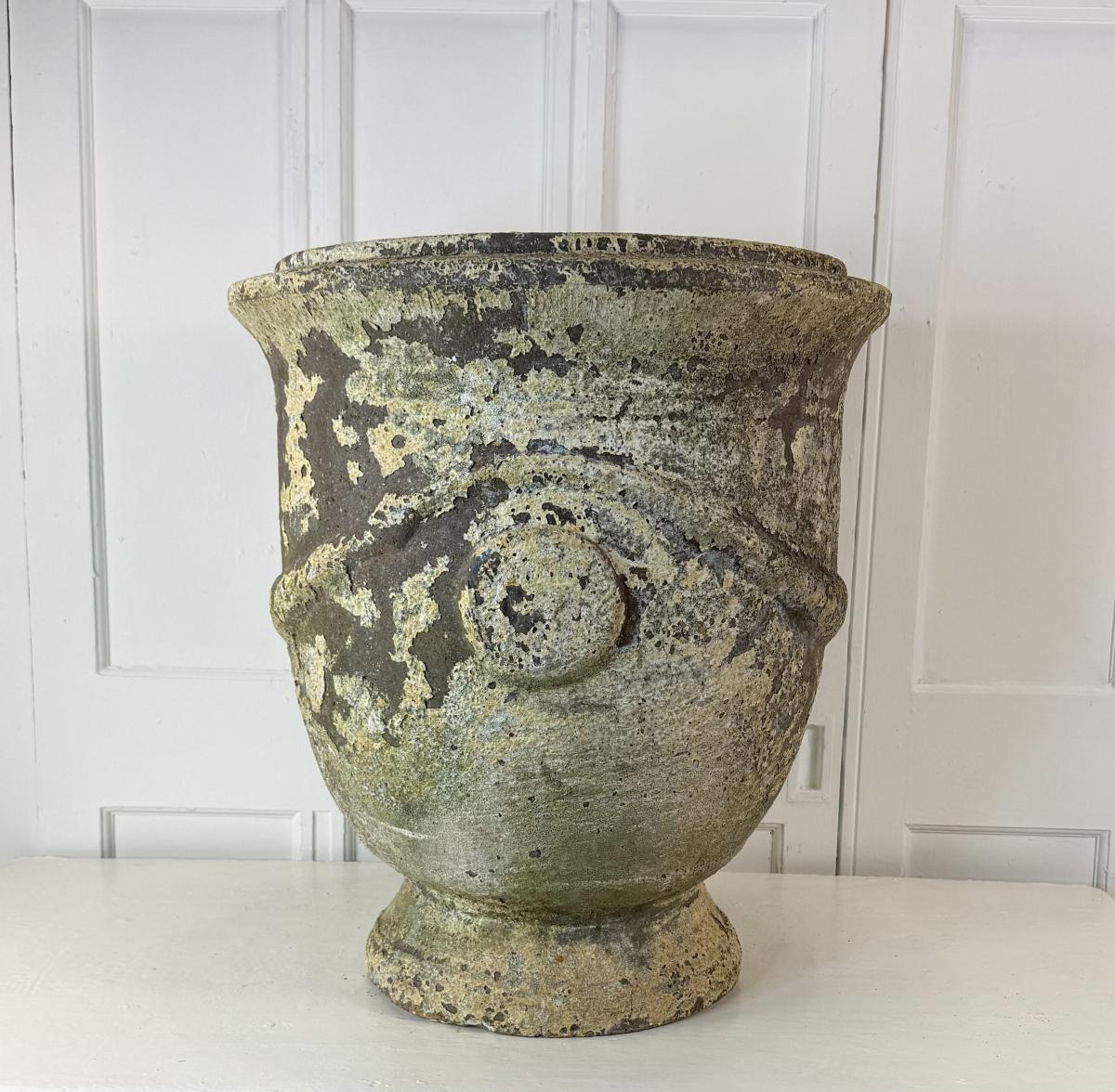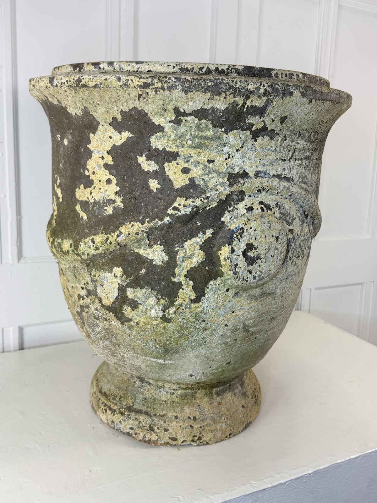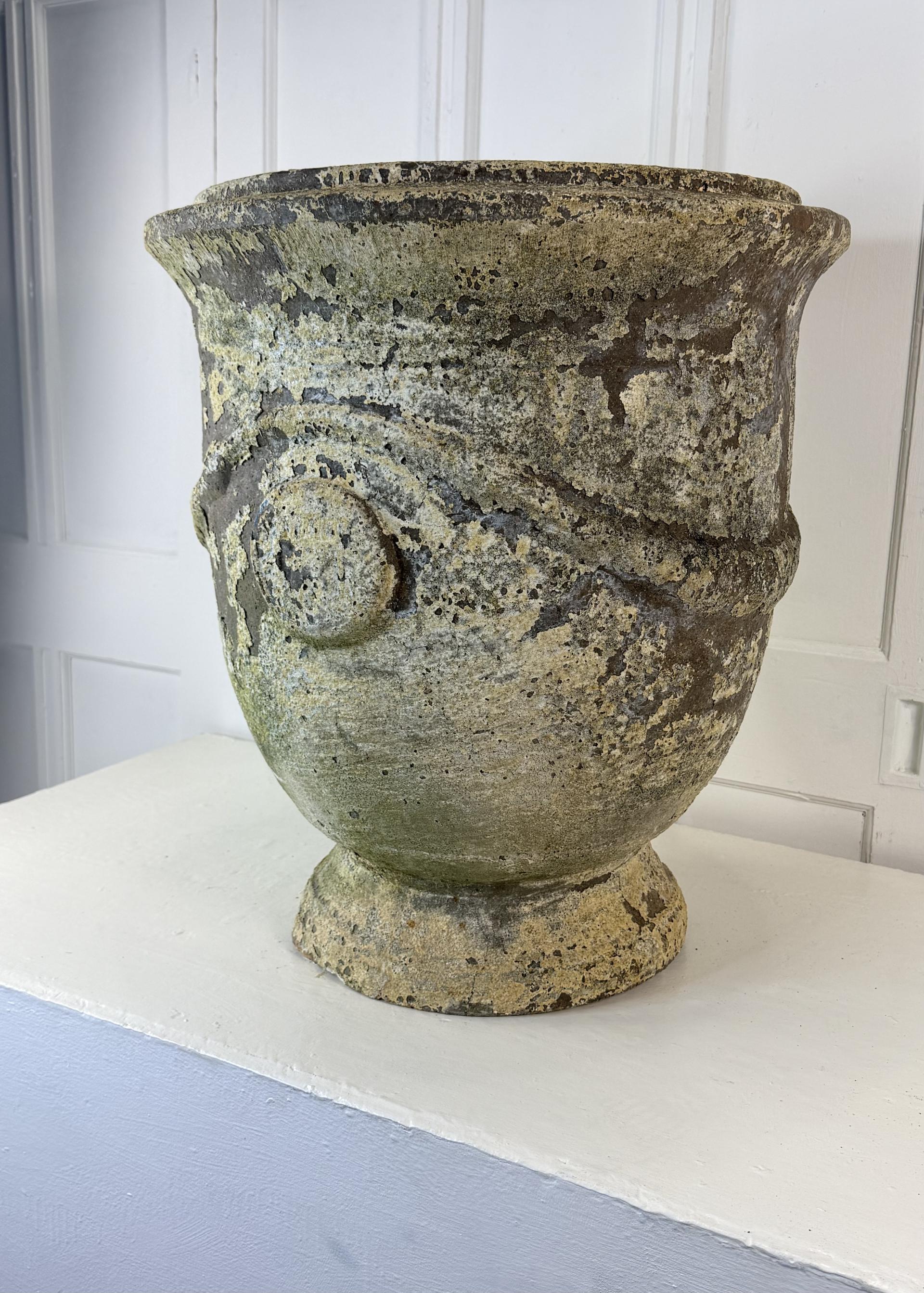A large, decorative French terracotta planter, of good scale and proportions with a crackled glaze weathered look finish.