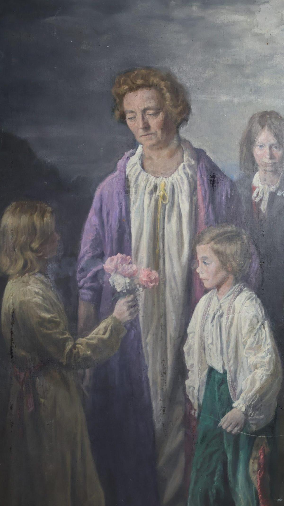 An incredibly well painted, Irish in origin, full bodied portrait depicting a central woman surrounded by 3 children.