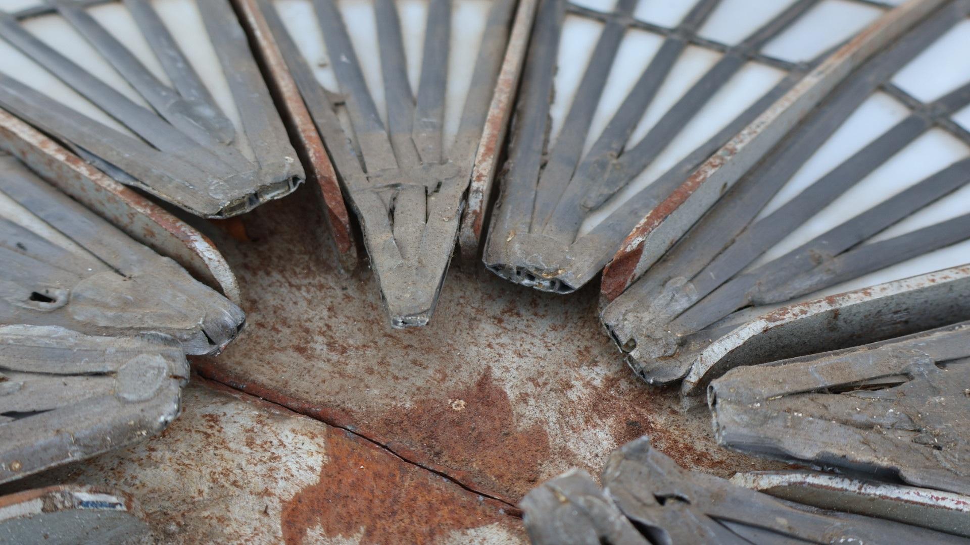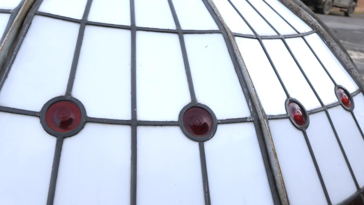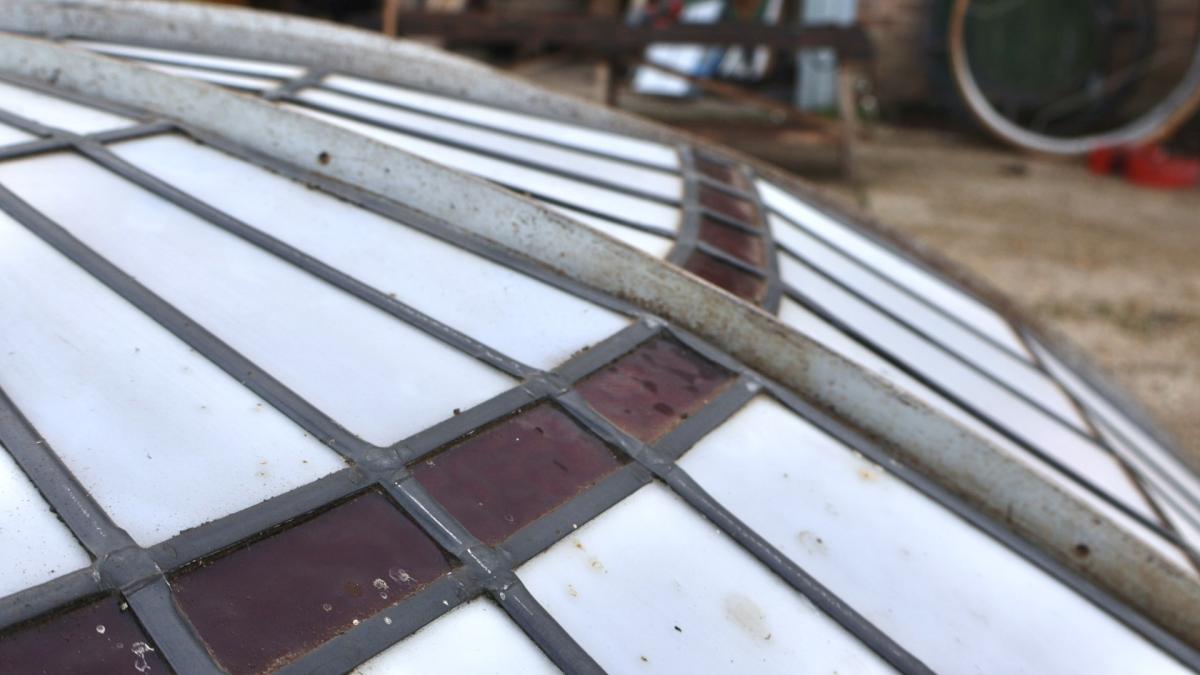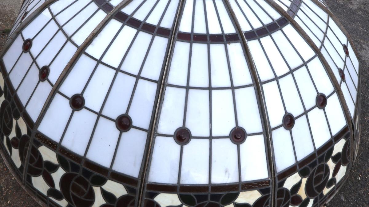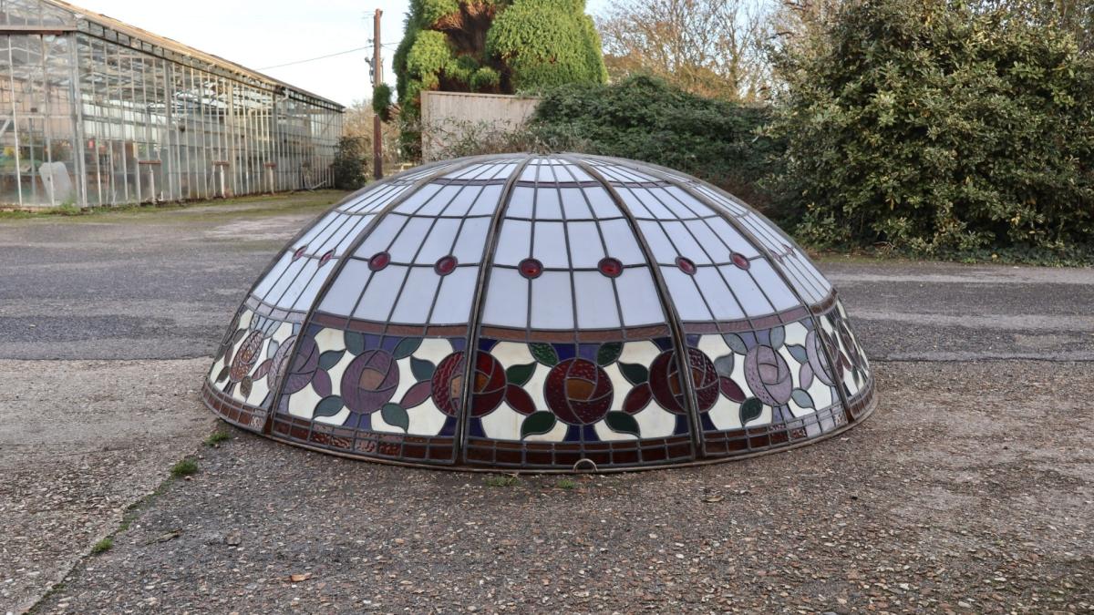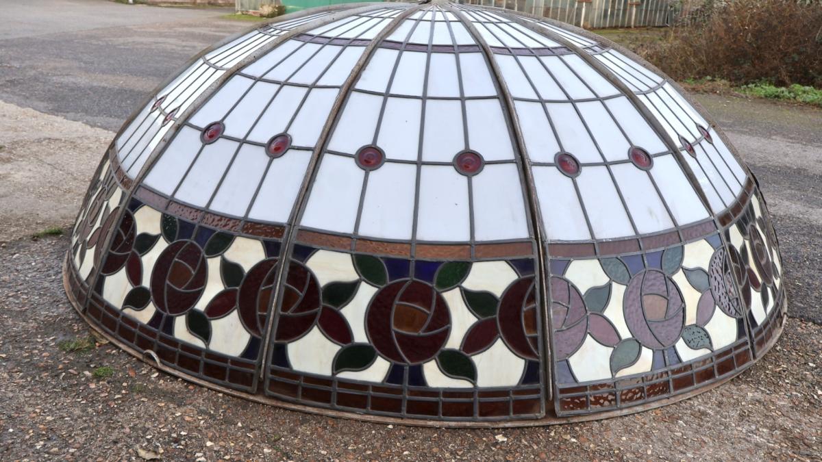 A large, very decorative, sectioned glass ceiling dome (8ft diameter), in 2 sections with 12 individual stained glass panels.