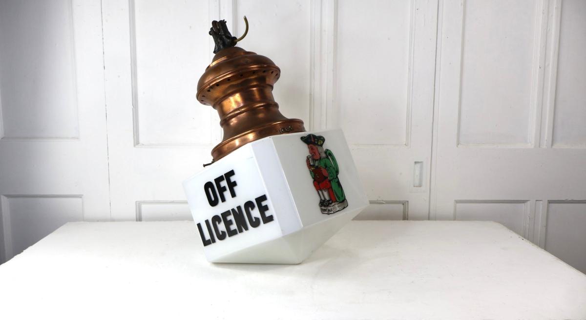 An insanely rare opaline lantern for an off licence selling Toby Ale.