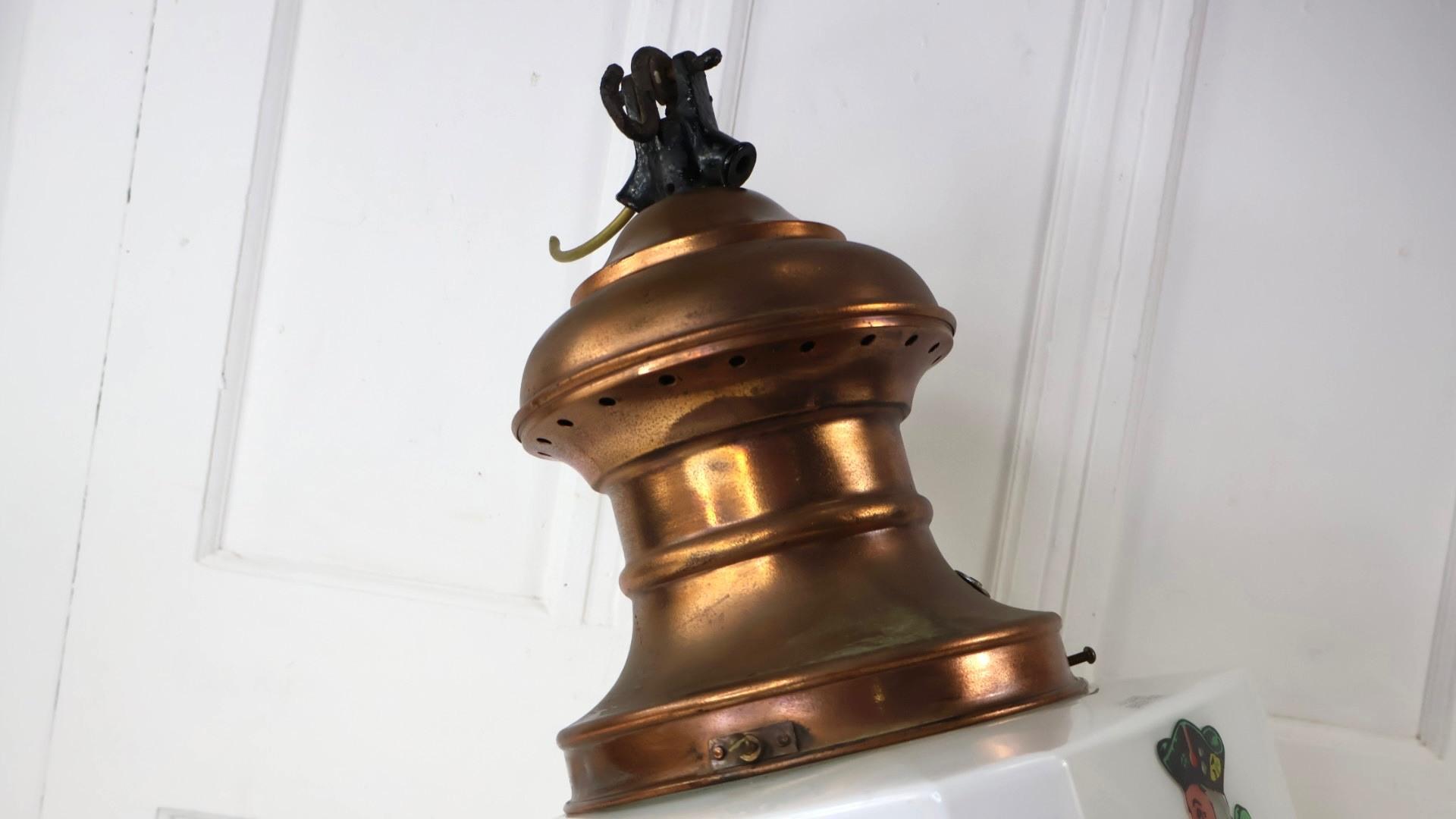 Retaining its large copper gallery, and gas hanging hook with its original gas inlet.