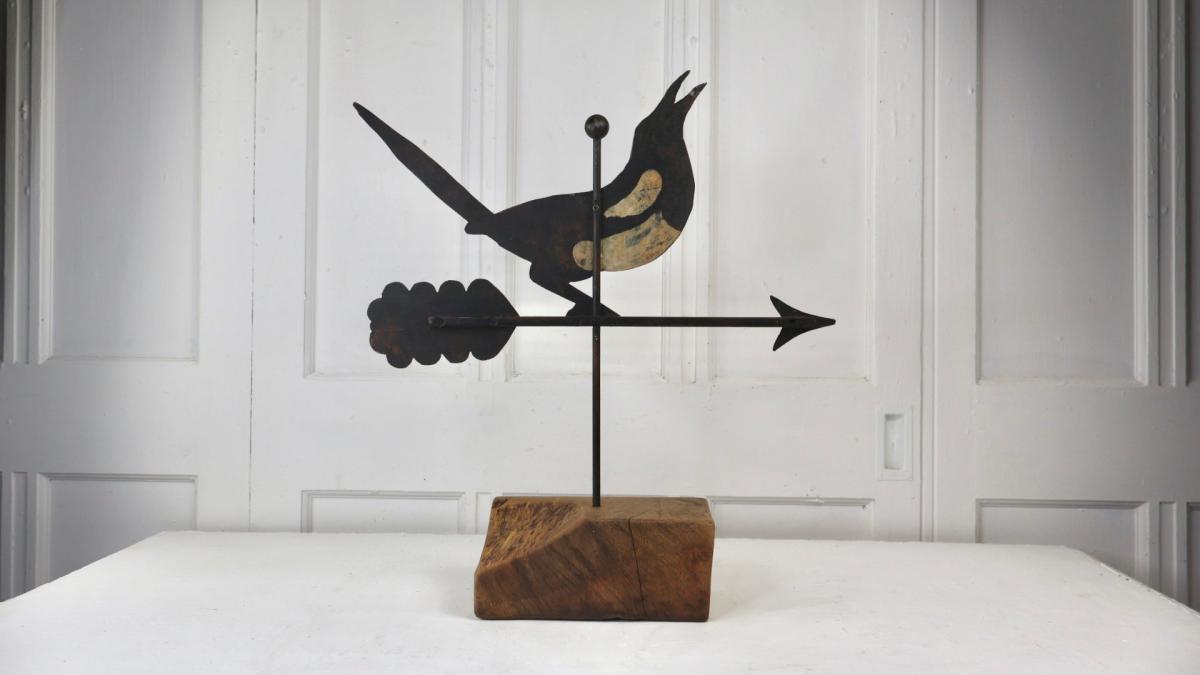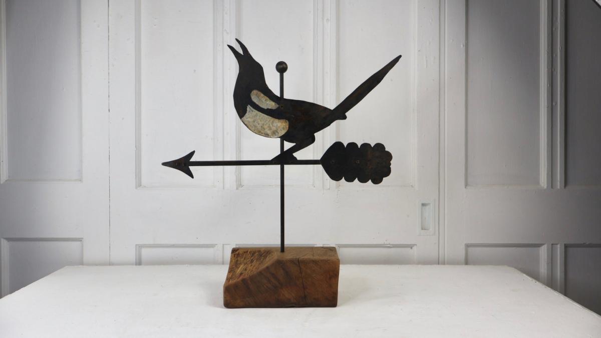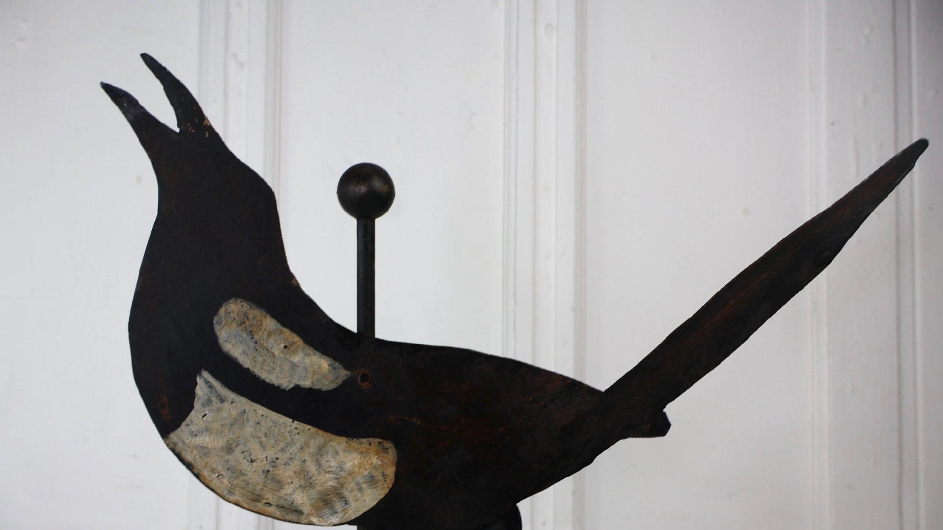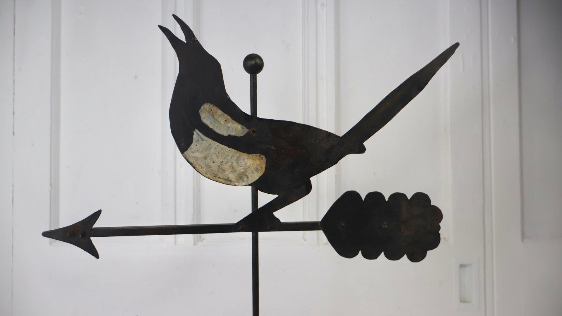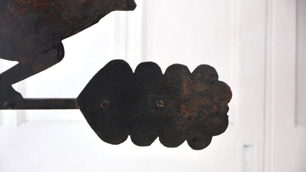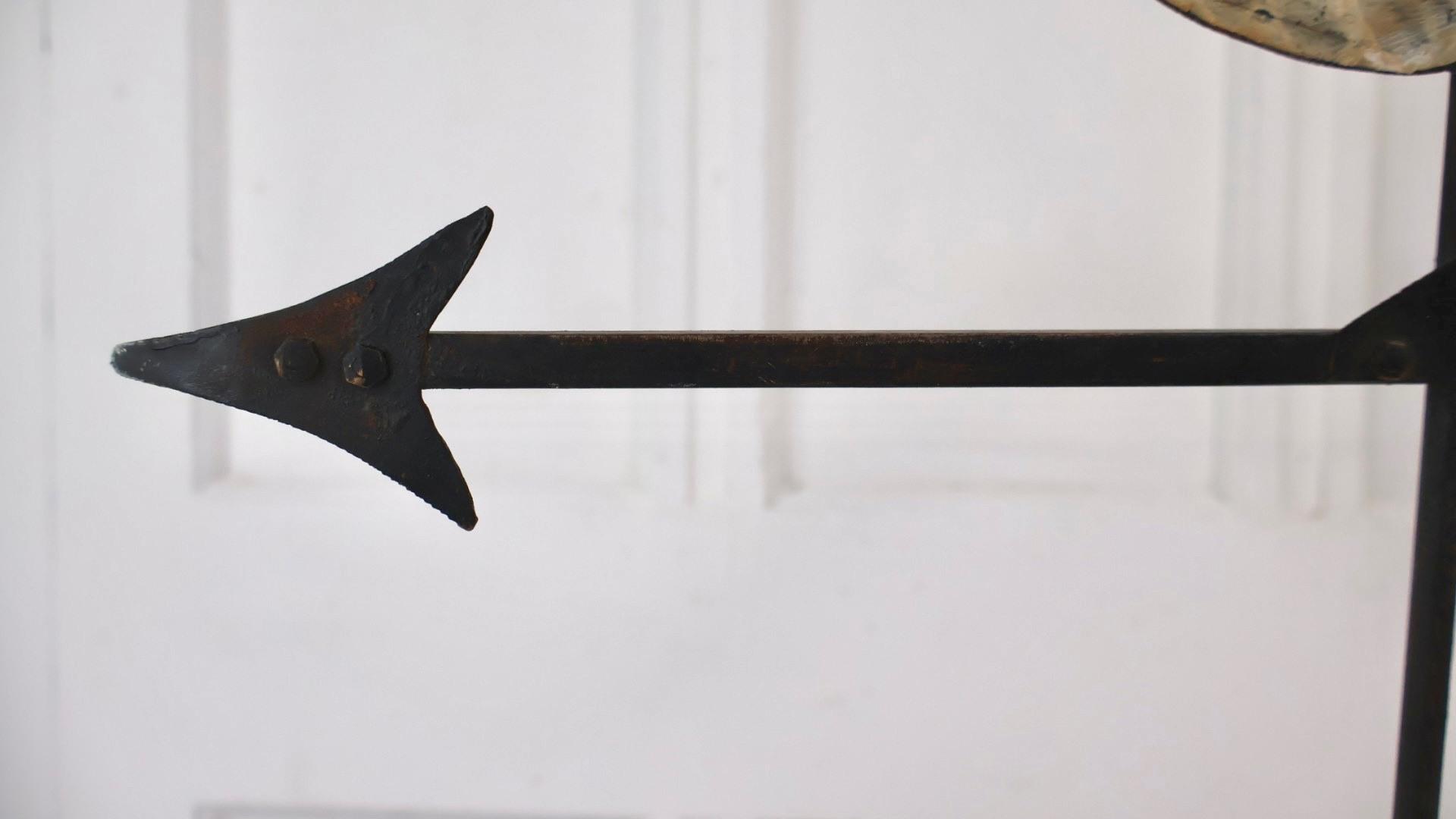 A charming piece of folk art in the form of a hand forged metal weathervane spinner.