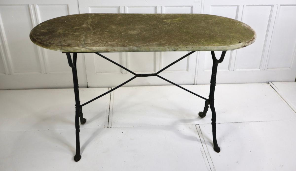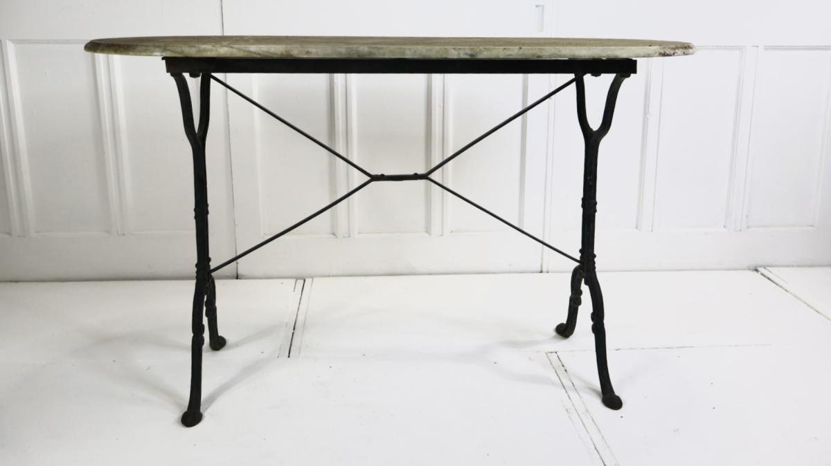 A useful marble top table, for inside or outside use as a console or occasional table.