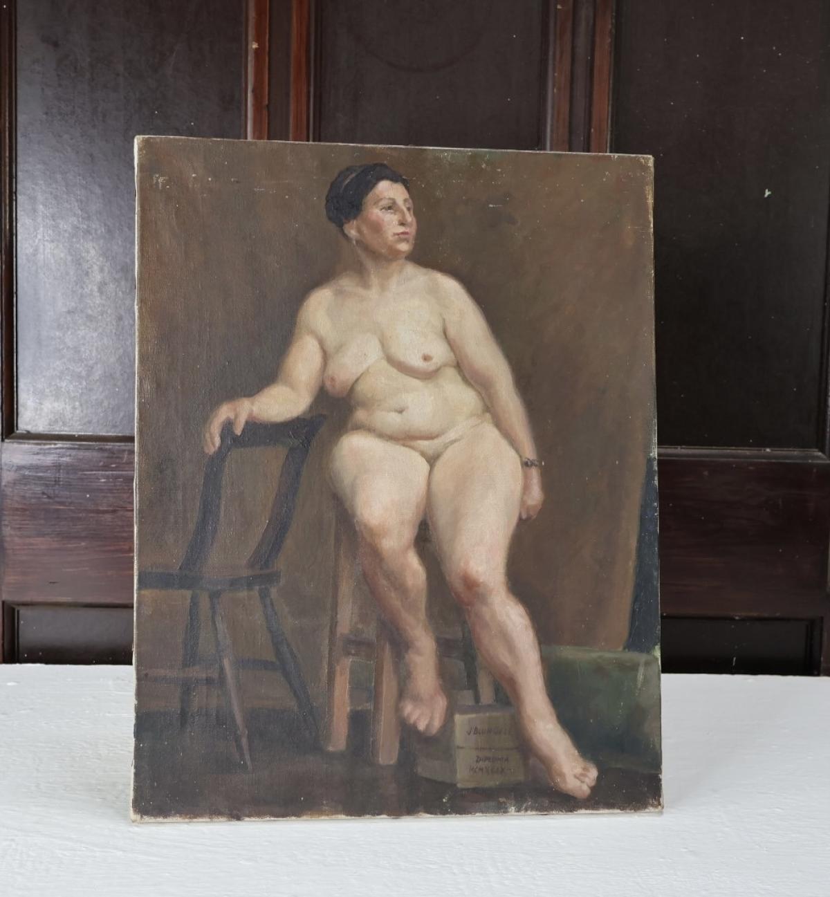 An incredibly well painted and charming nude study, oil on canvas.