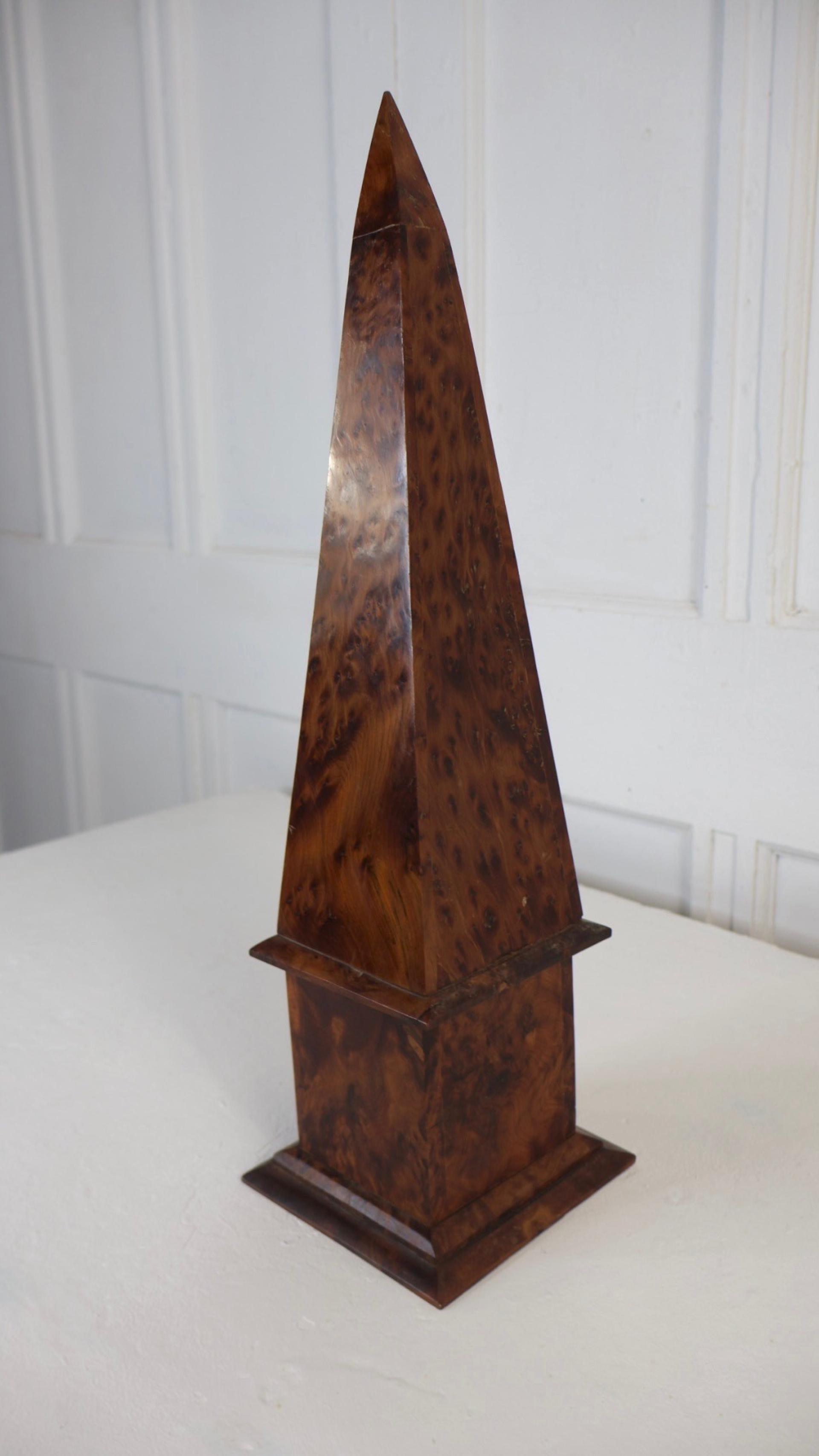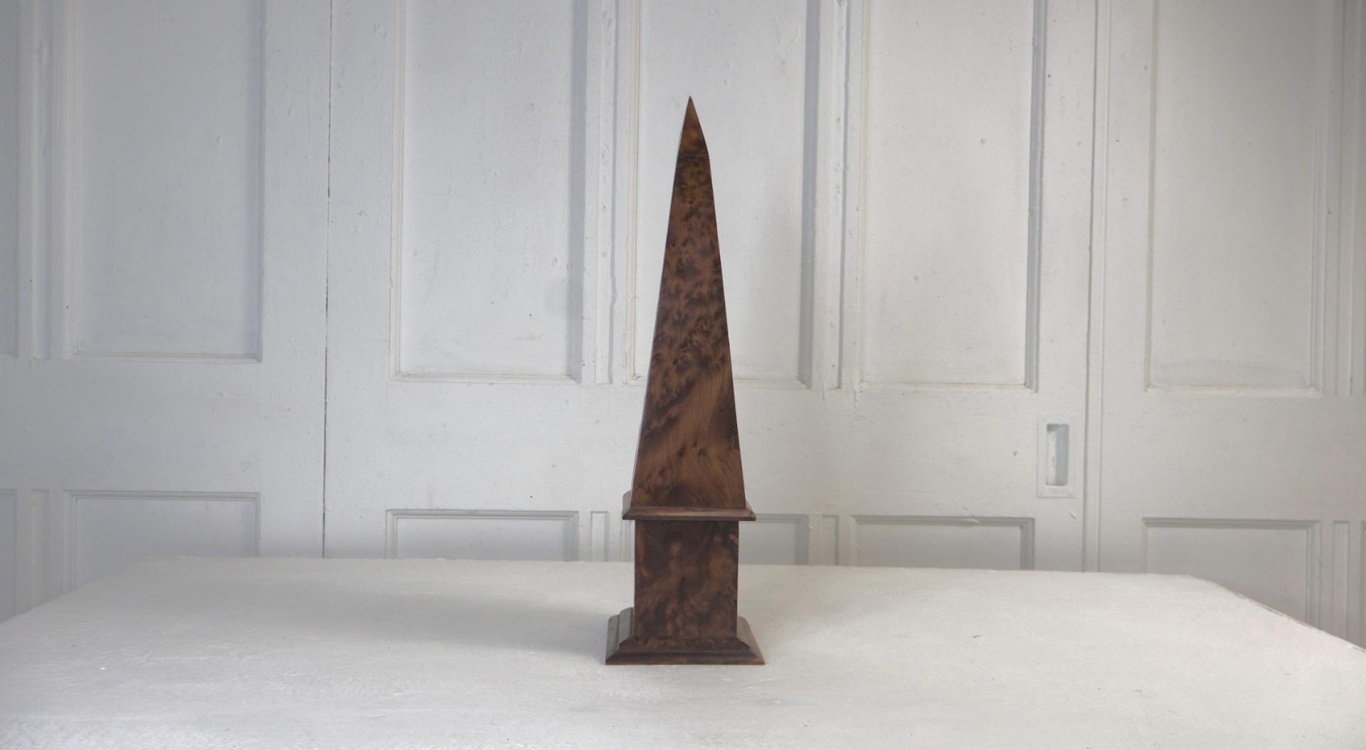 A decorative burr maple obelisk dating from the early part of the 20thc.