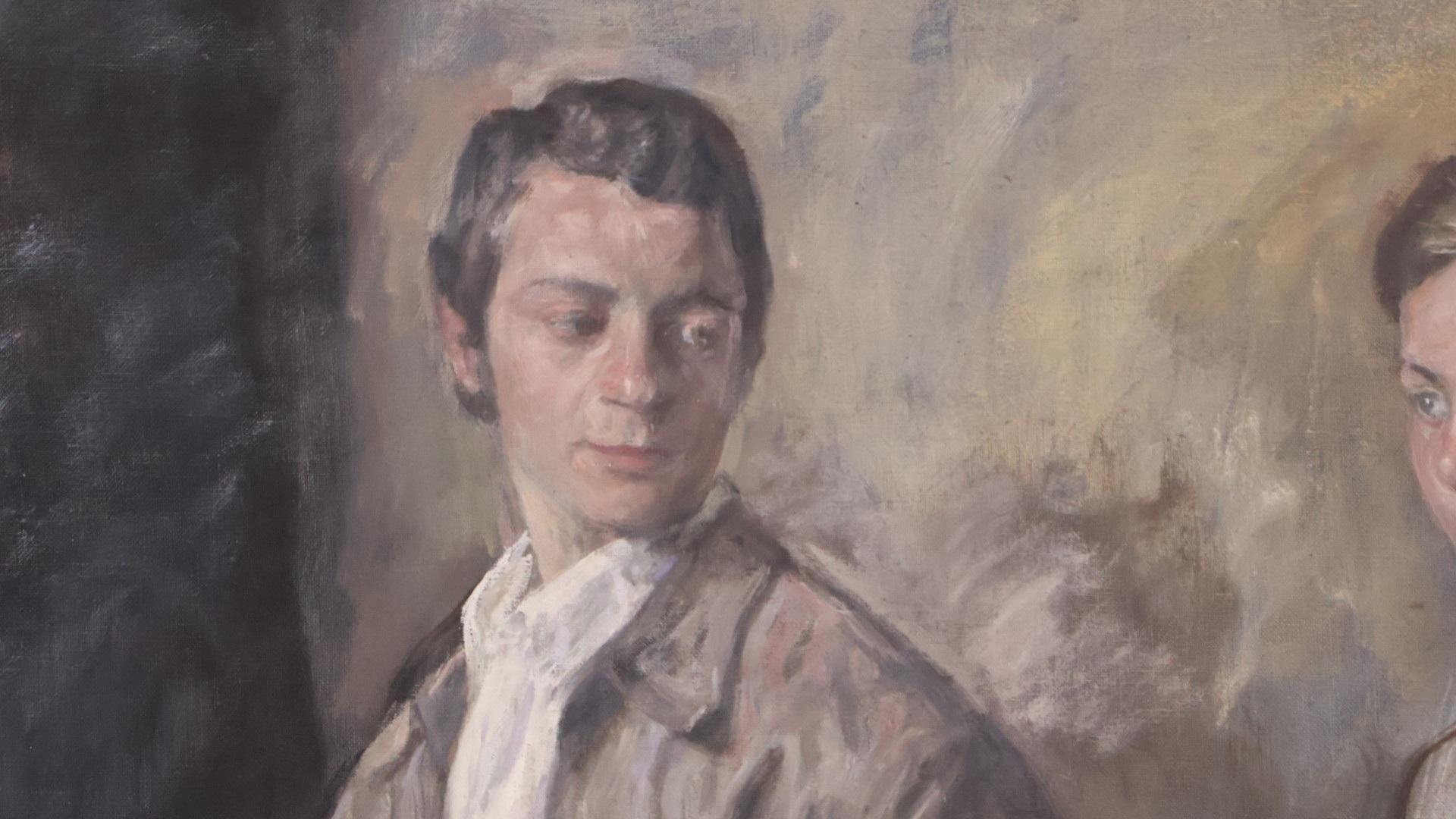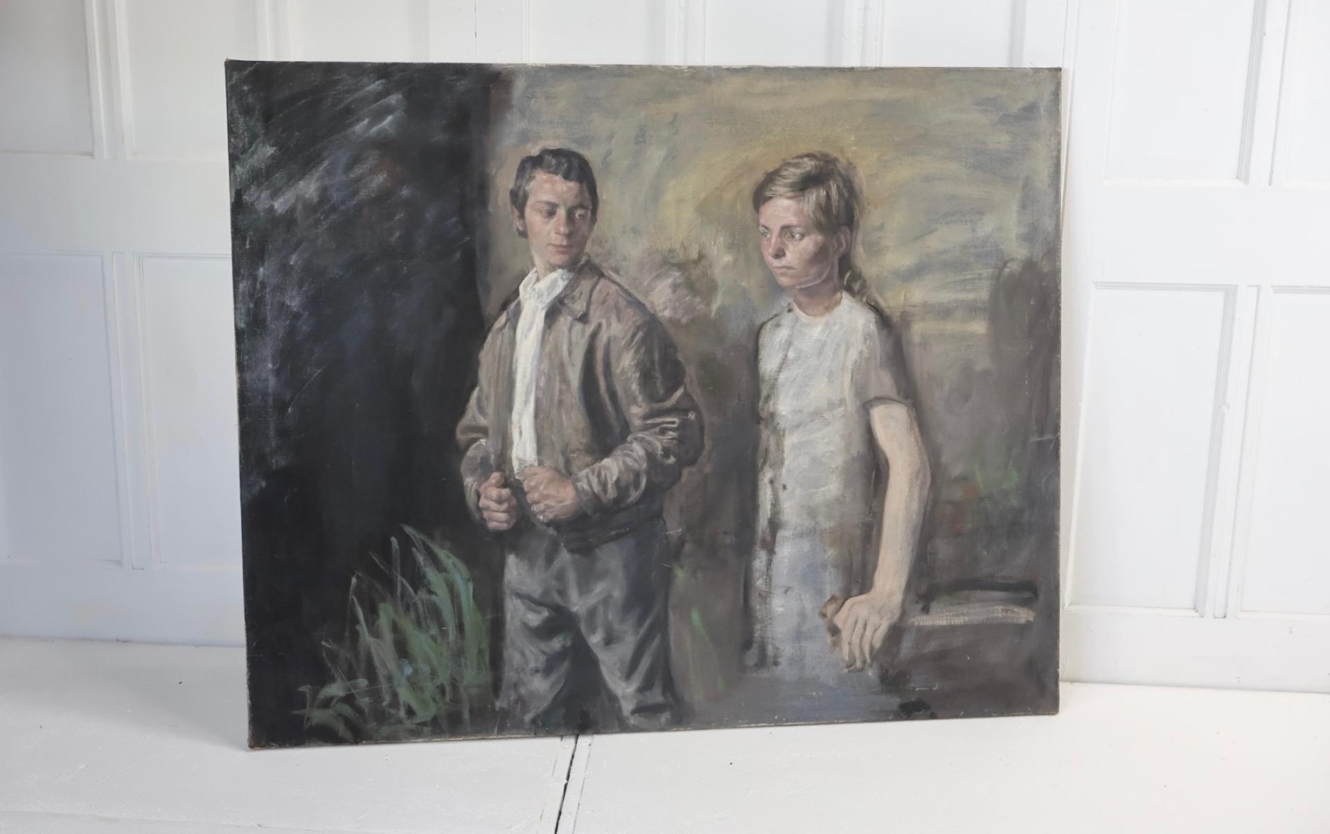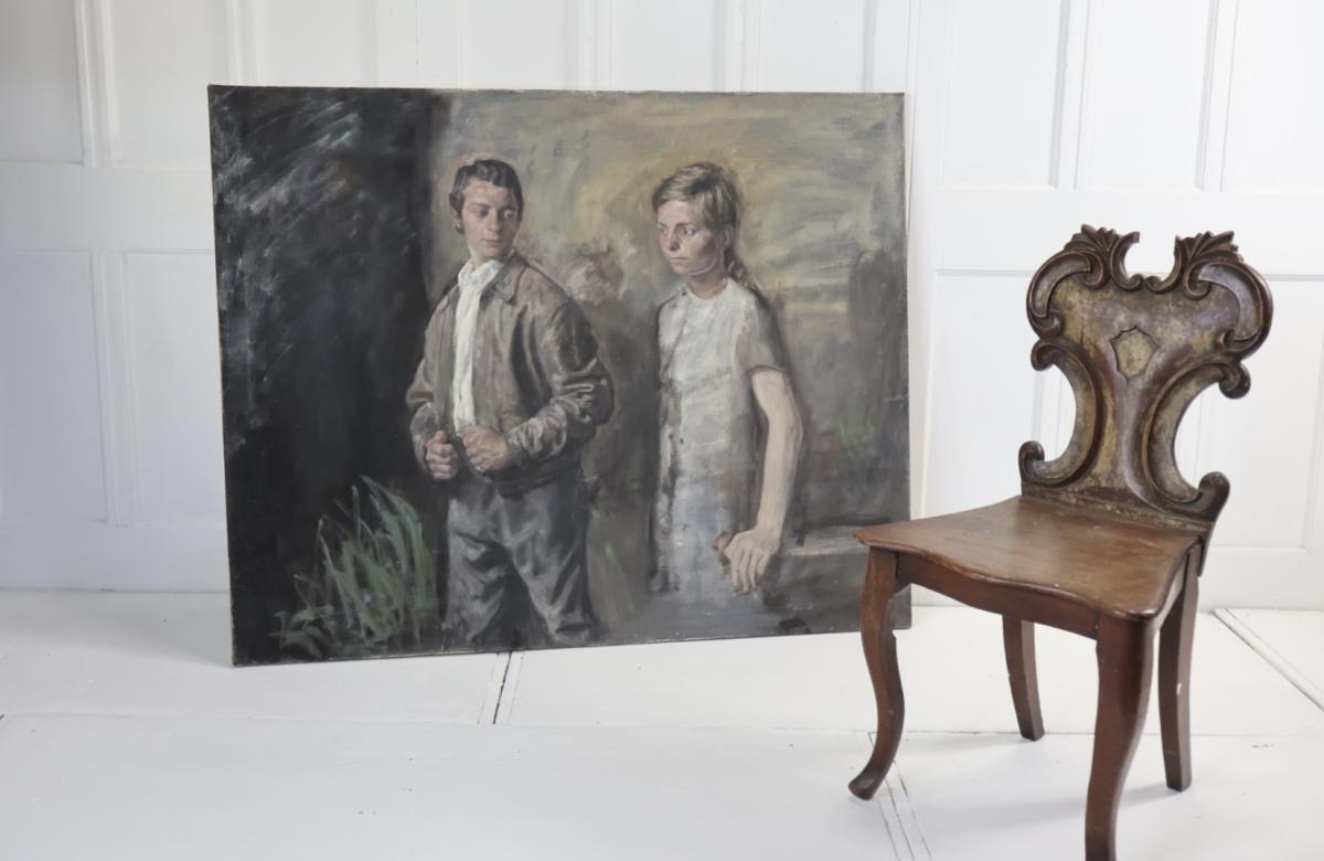 A large oil on canvas depicting a young couple.