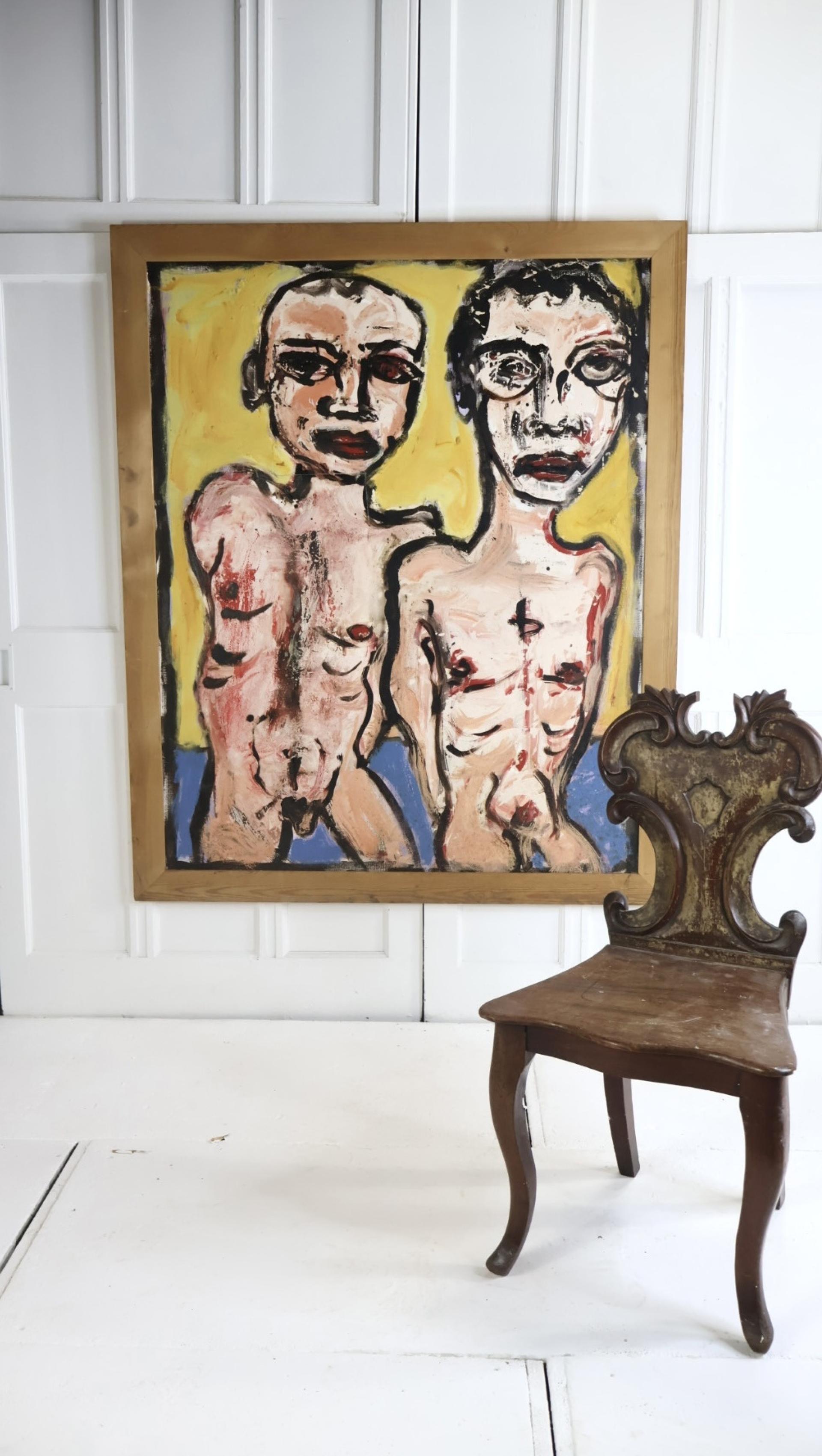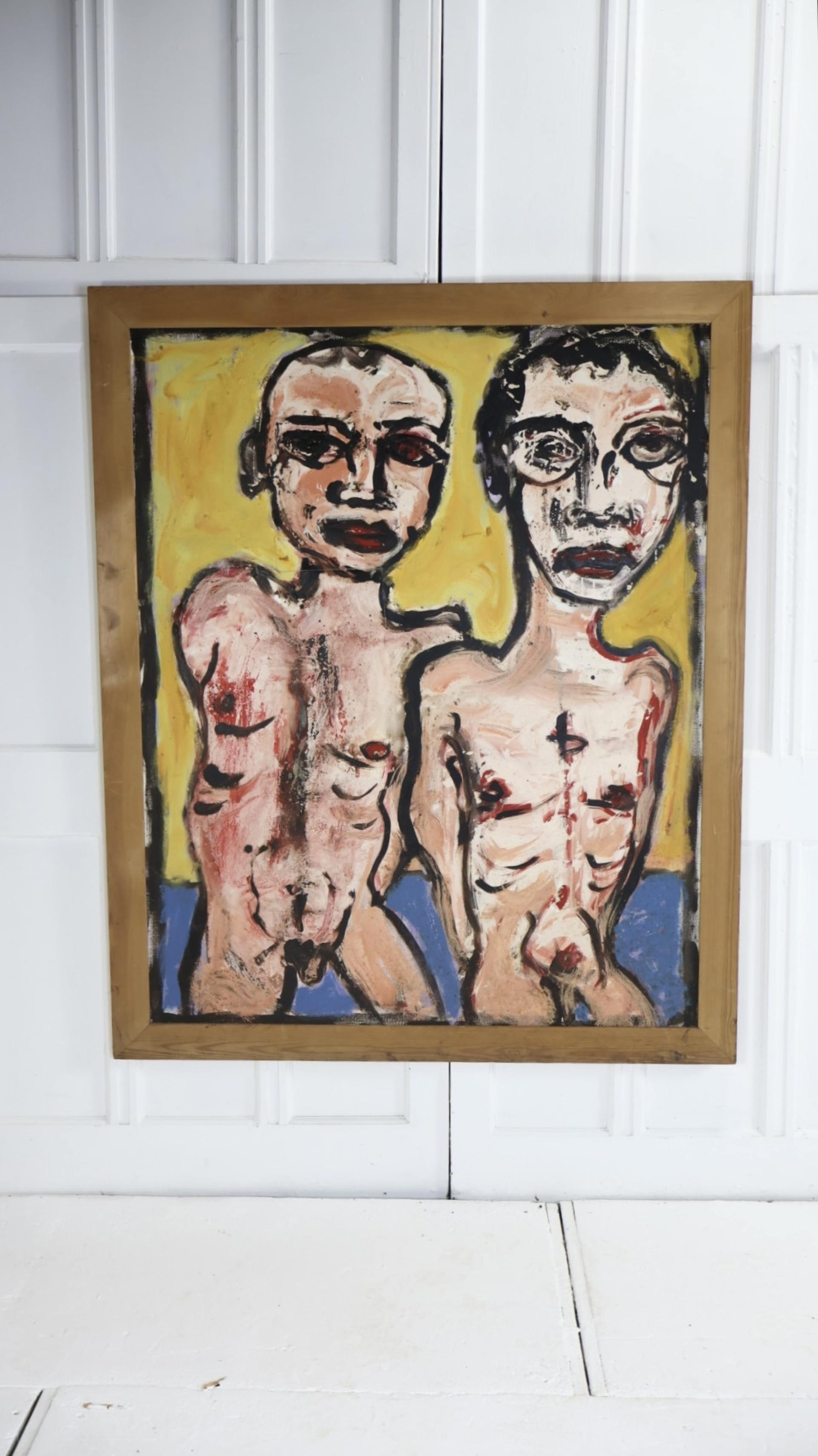Titled Will and Pete, a large, 4ft high oil on canvas in its original wooden frame.