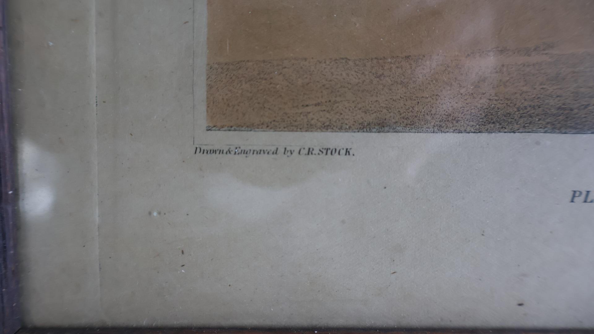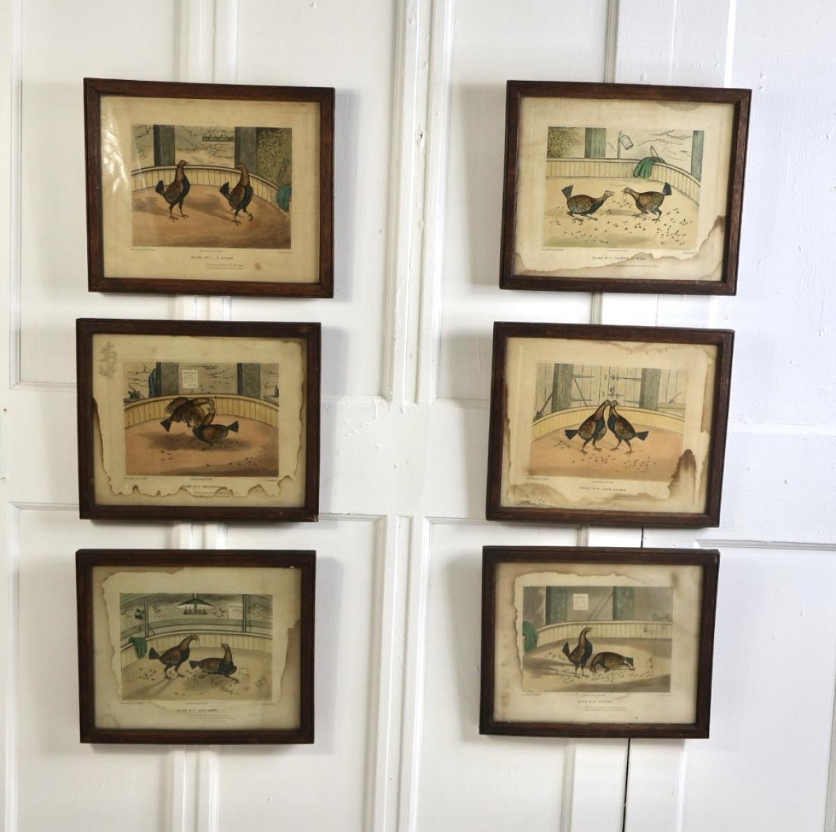 A set of 6 framed etchings from the “Cock Fighting” series by the British artist Christian Robert Stock in the early 19thc.