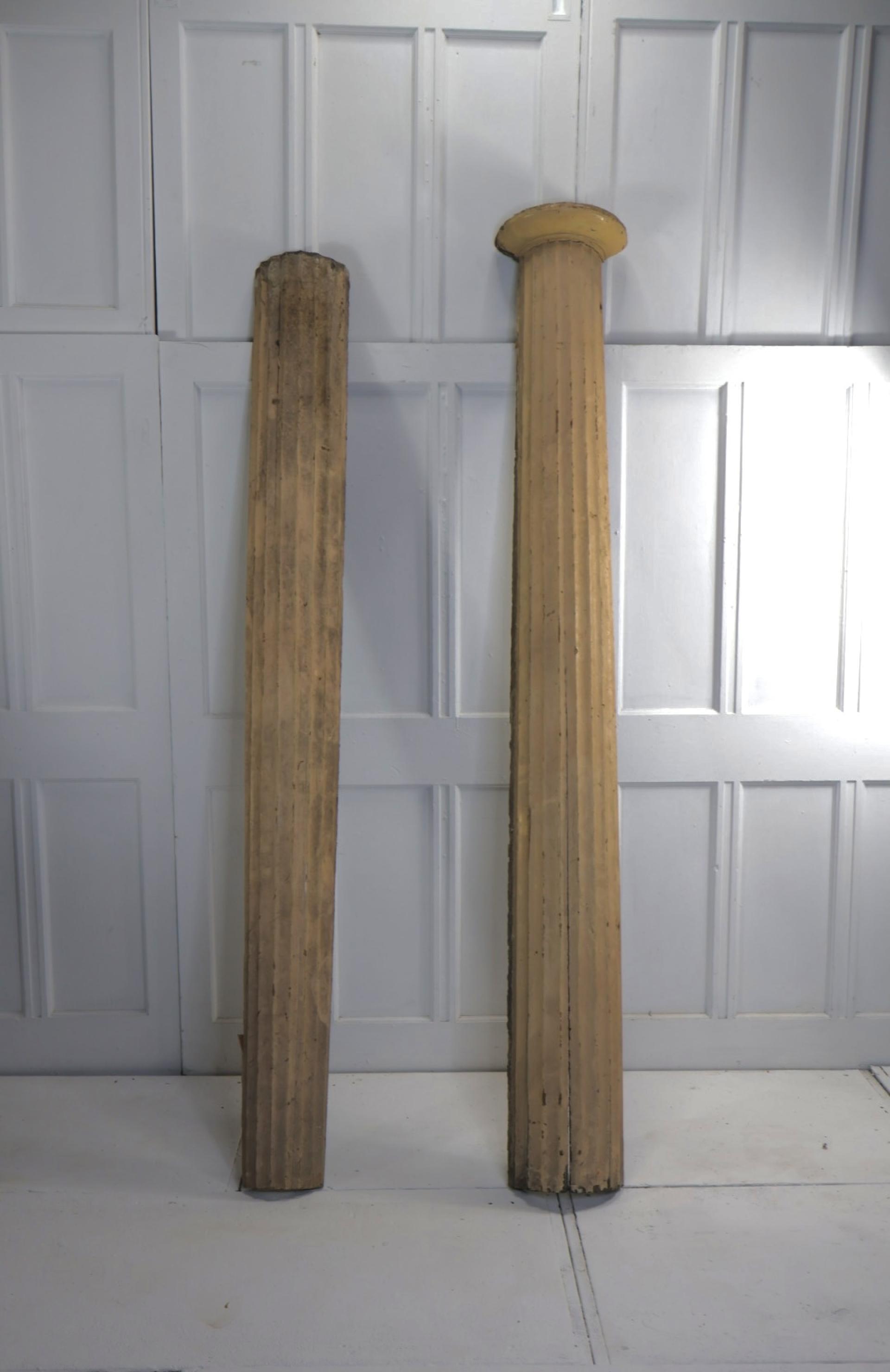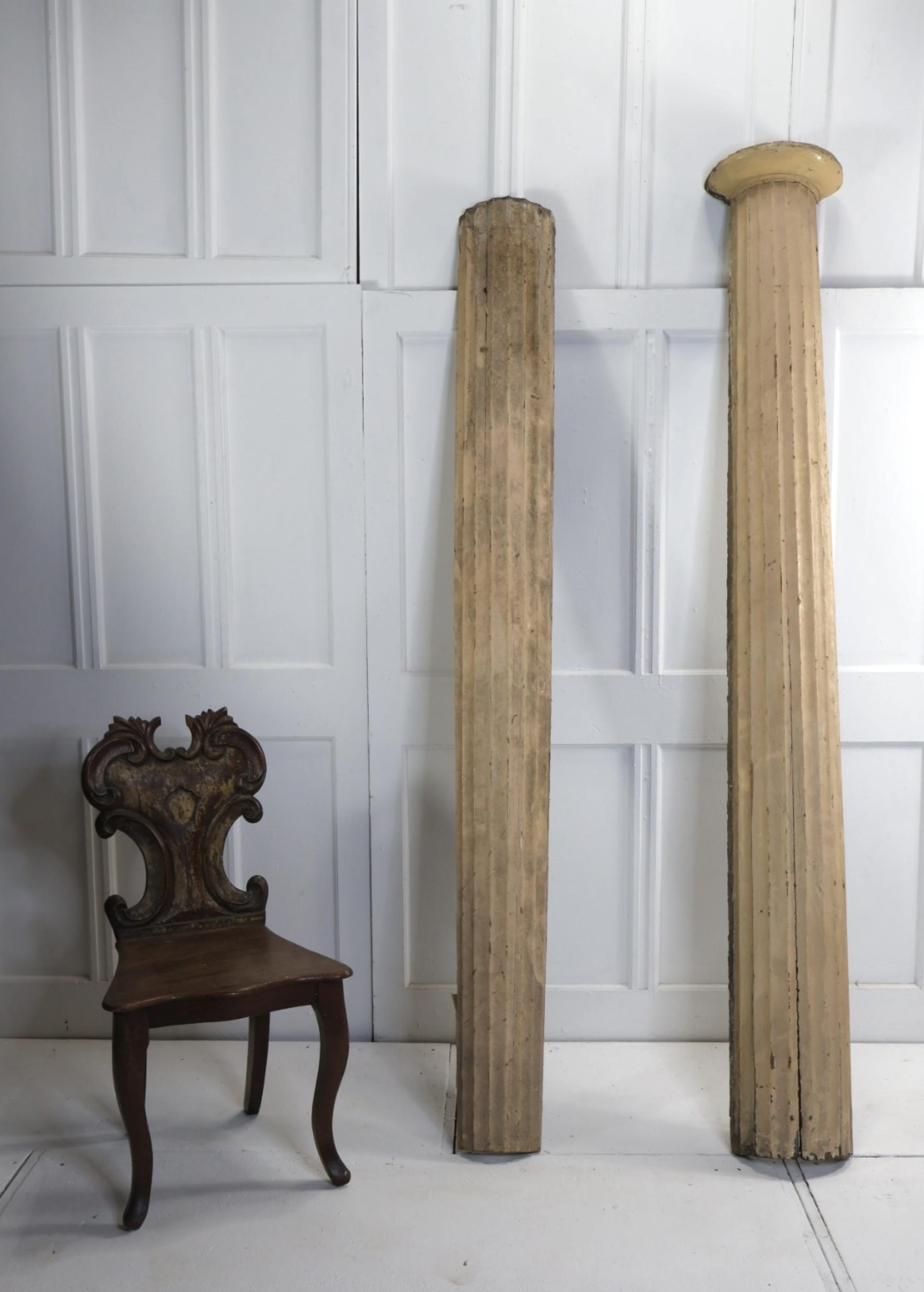 A pair of hand carved, 19thc wooden half columns, retaining their original period paint.