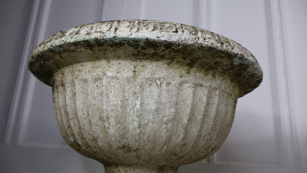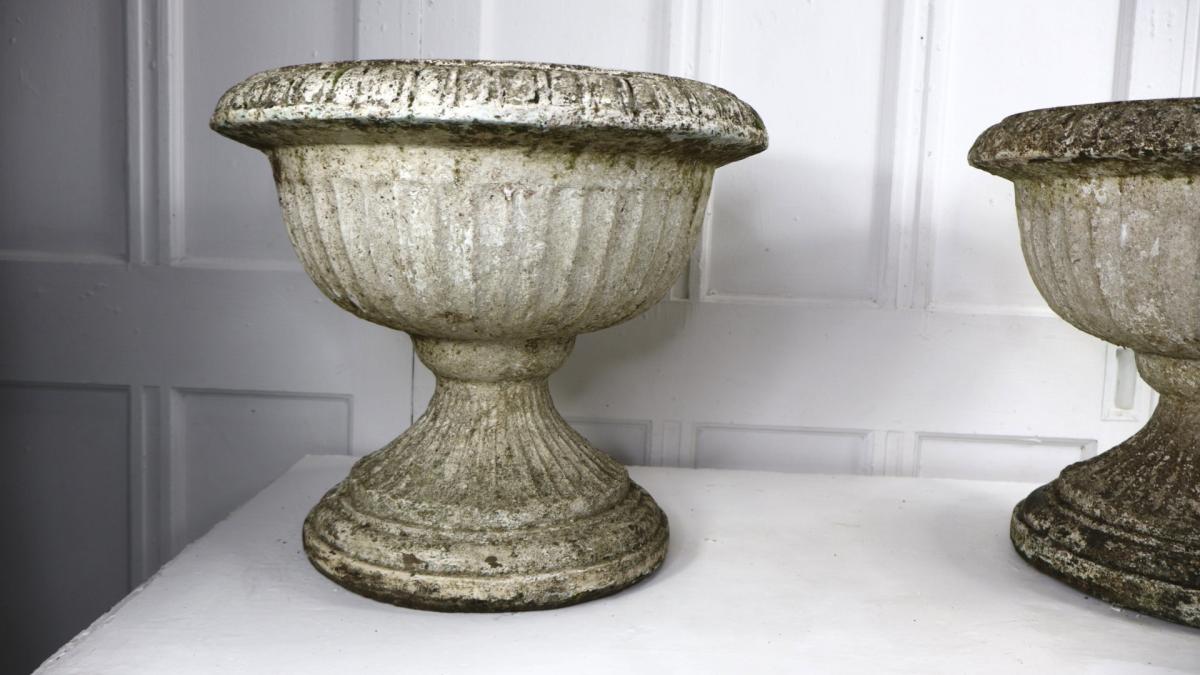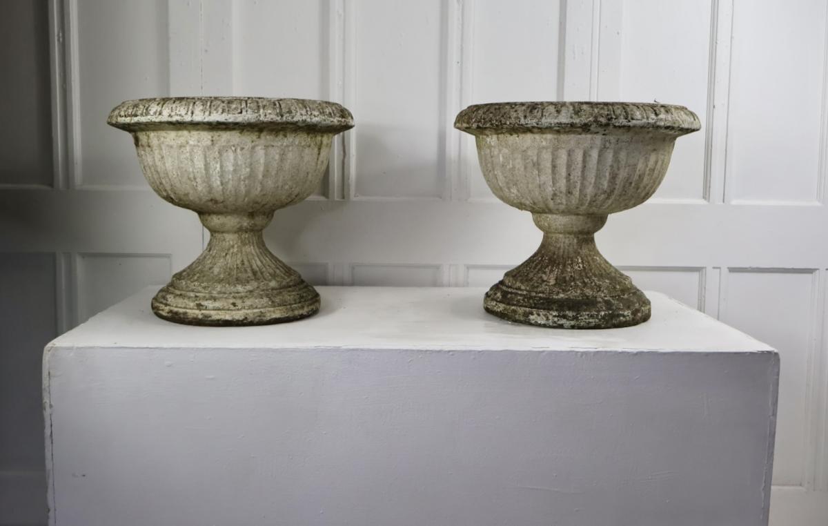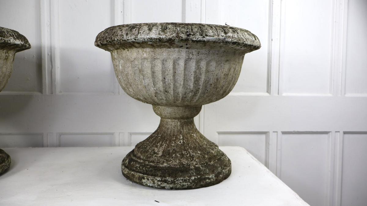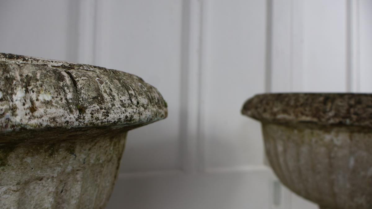 A very decorative pair of recon stone weathered urns.