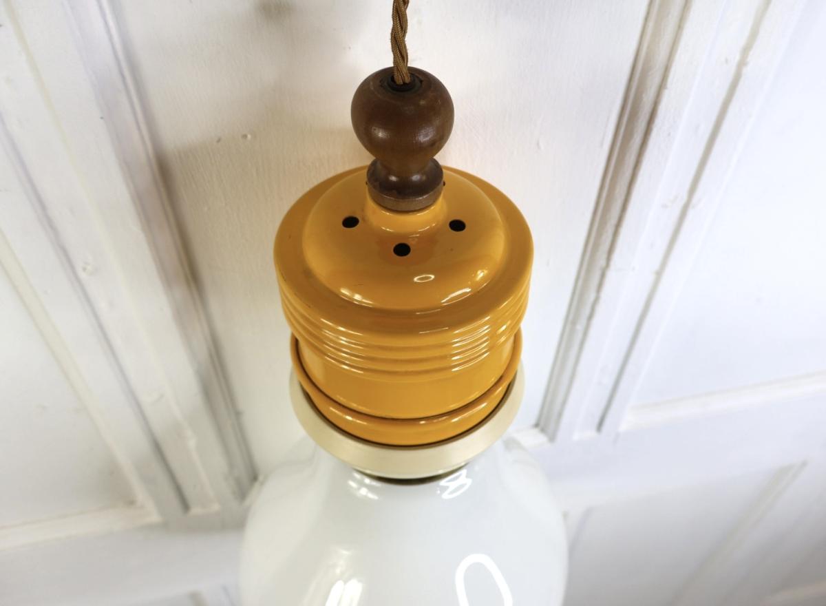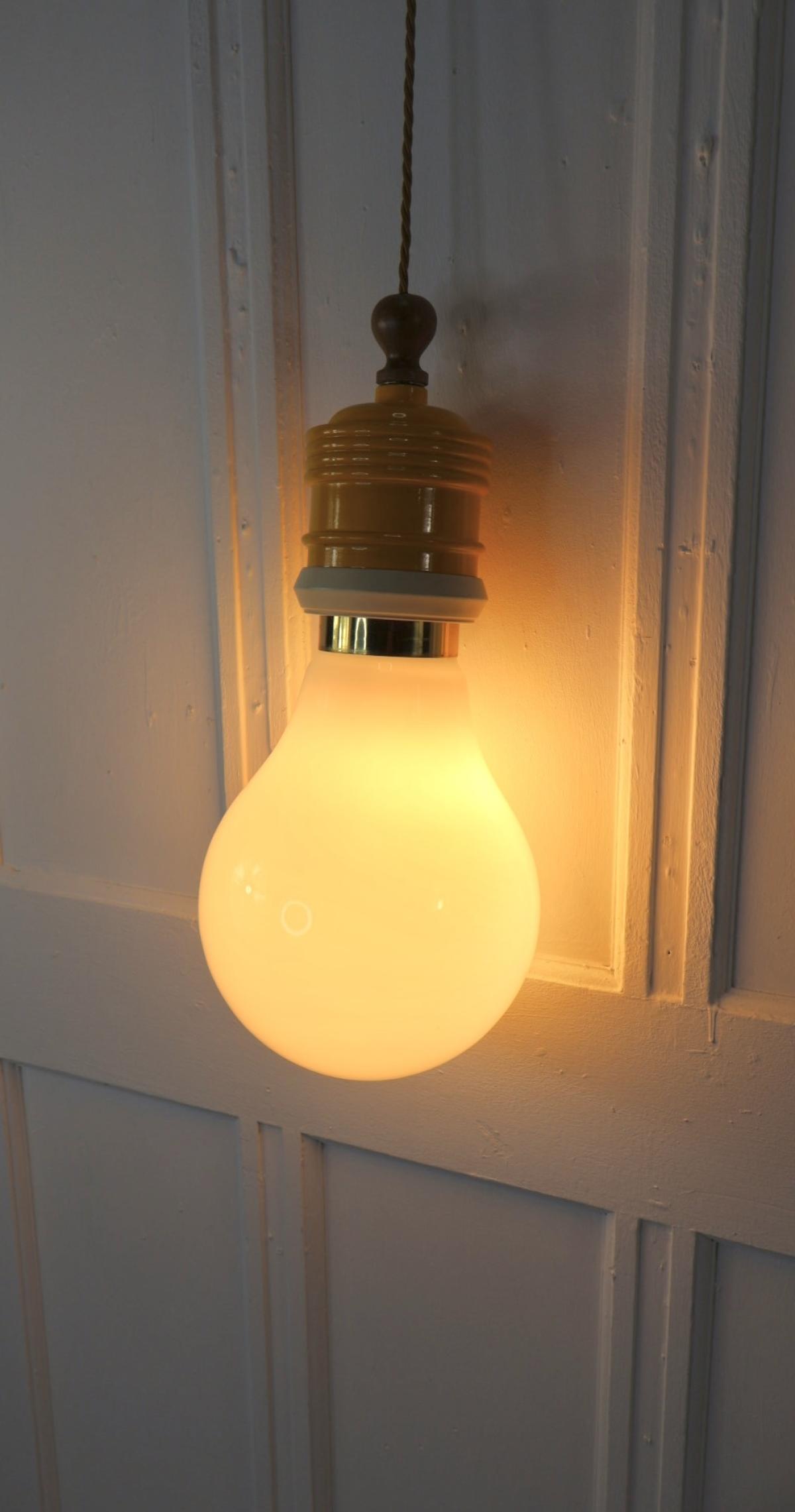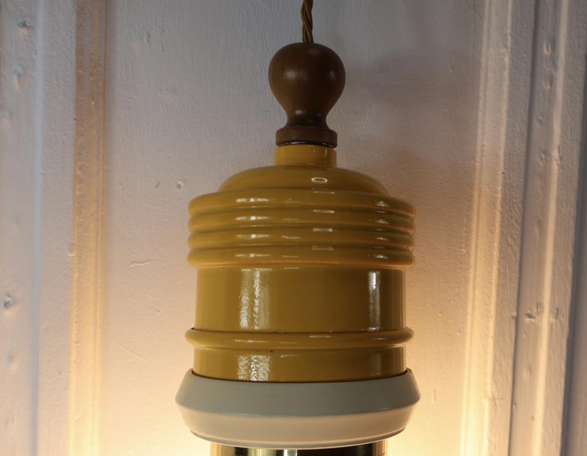 In good original condition, the light has been rewired and currently comes with a 3 pin plug but can be wired into a light switch.