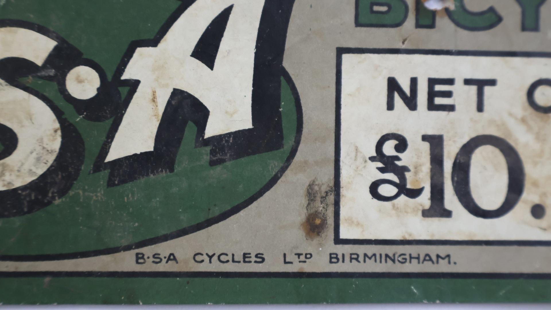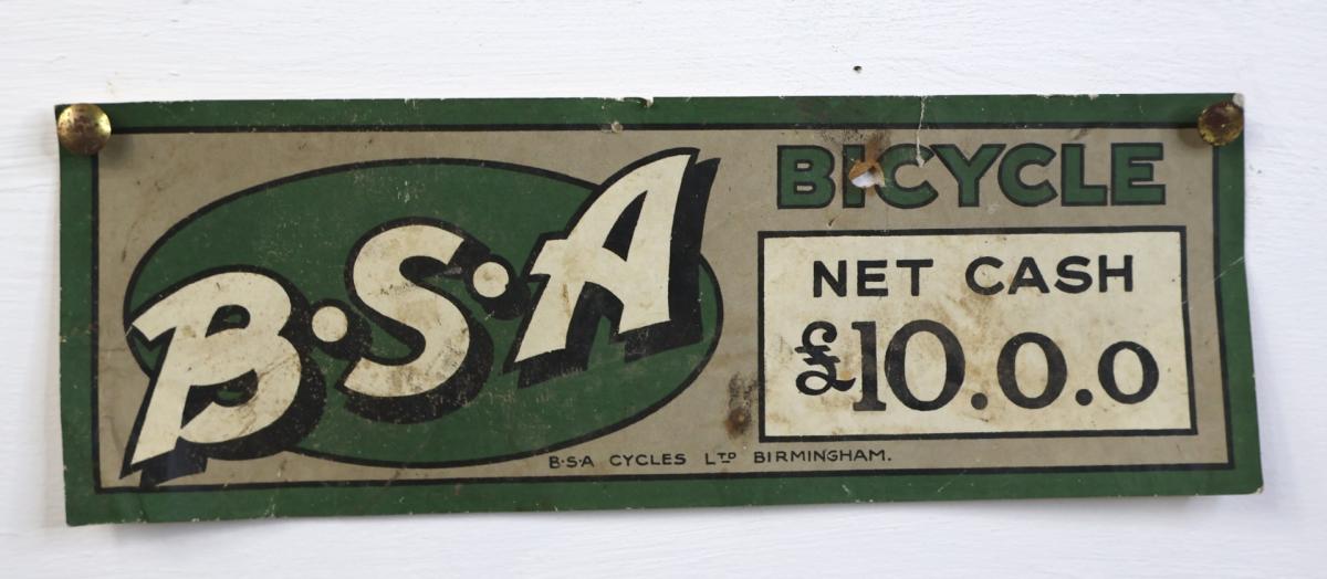 A diminutive rare survivor, paper advertising point of sale label for BSA bicycles, displaying the price of £10.