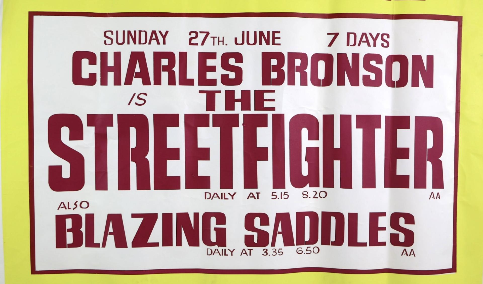 Advertising the new Charles Branson films The Streetfighter and Blazing Saddle.