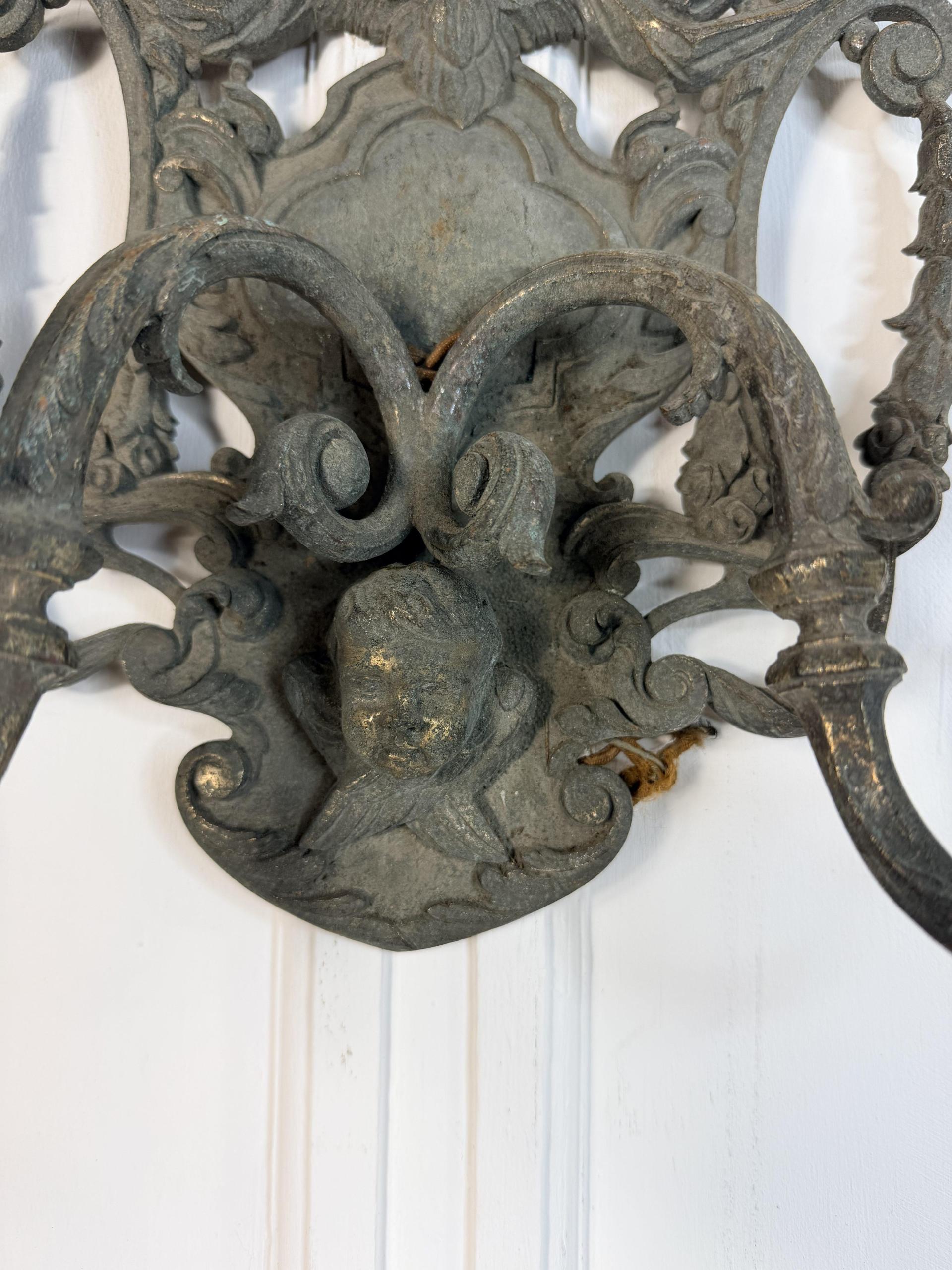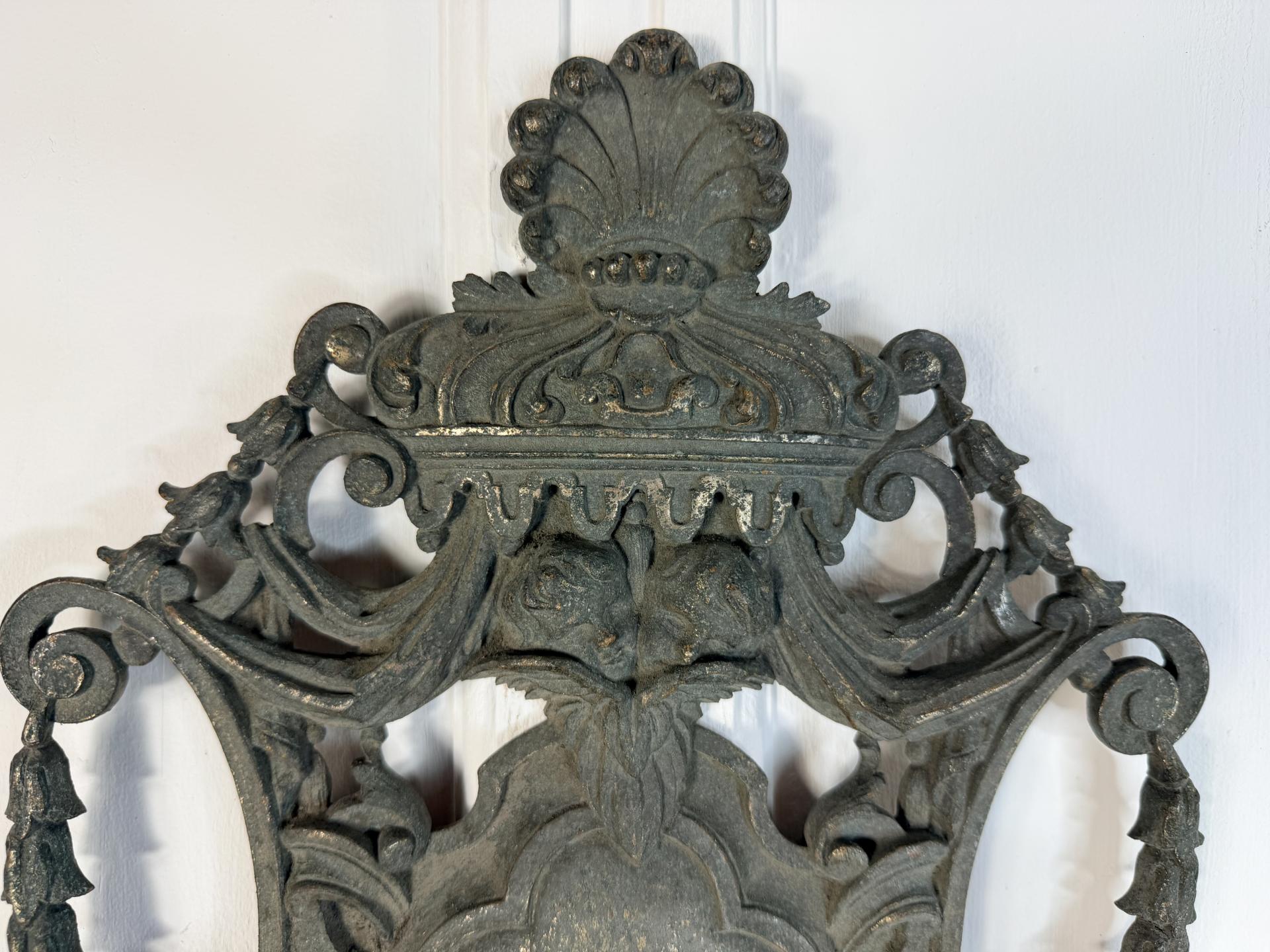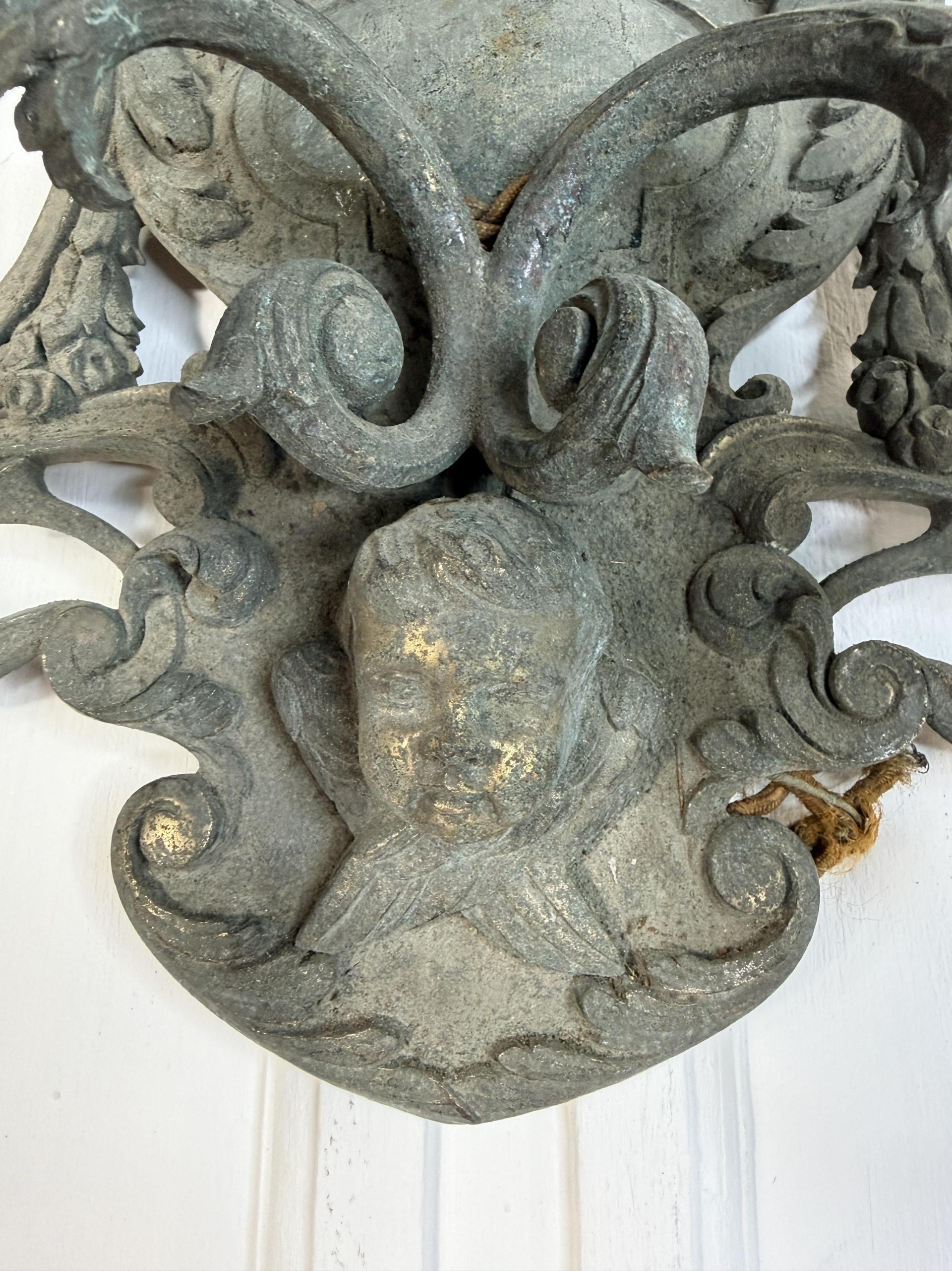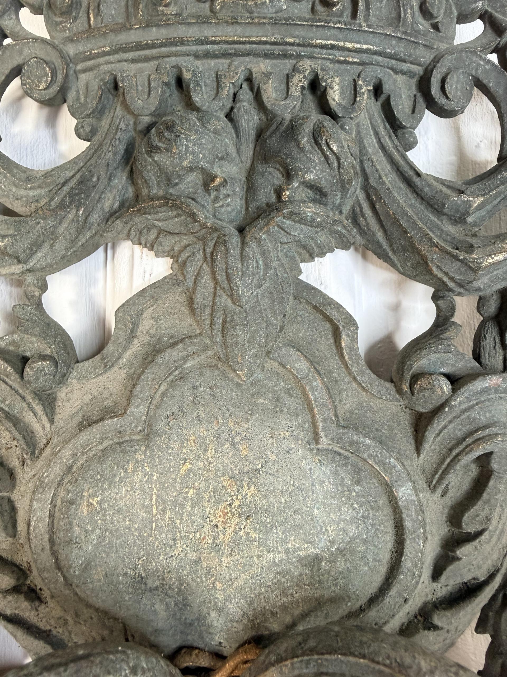 High quality embossed cast, depicting winged putti, surrounded by swags and floral design.