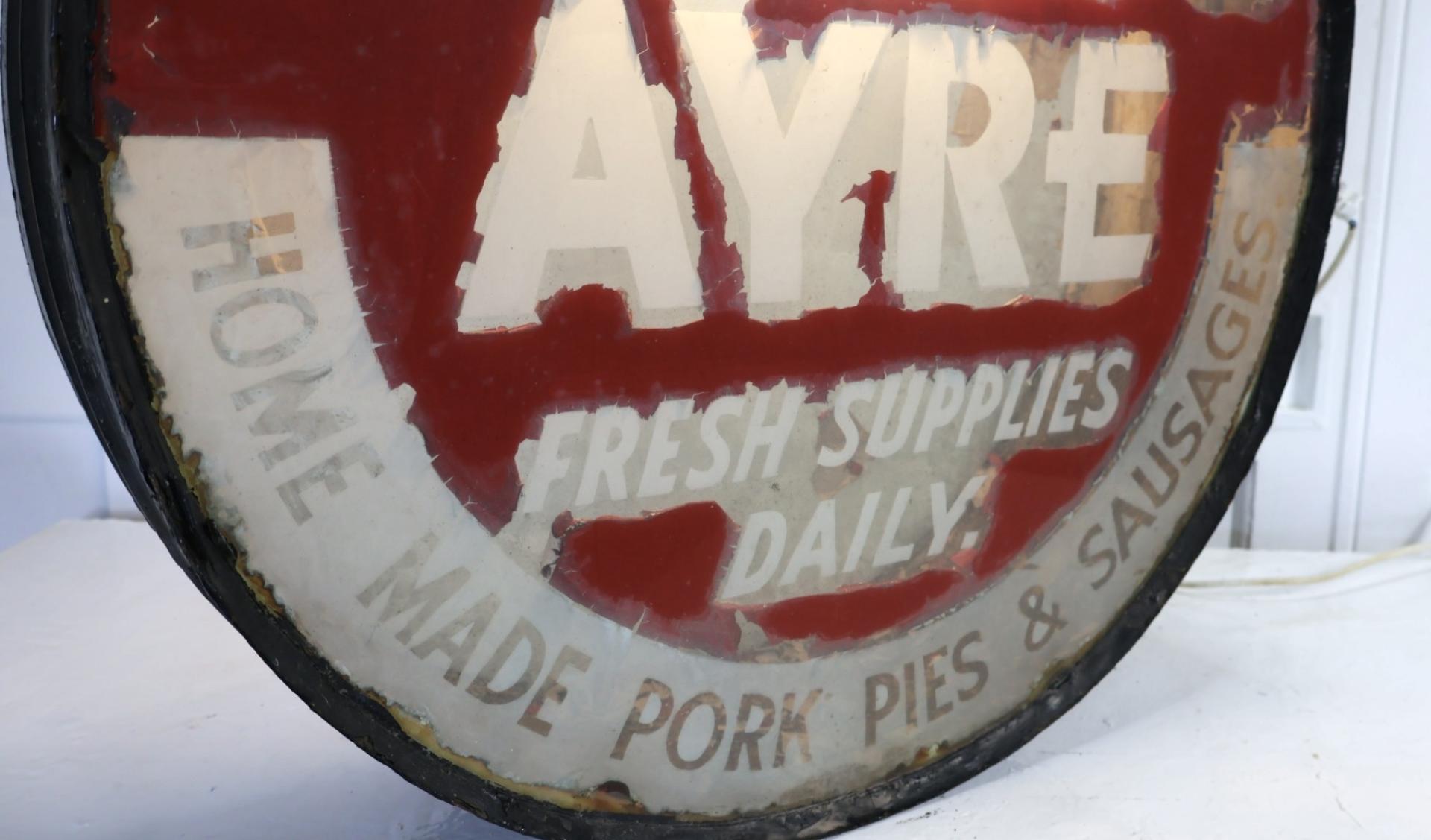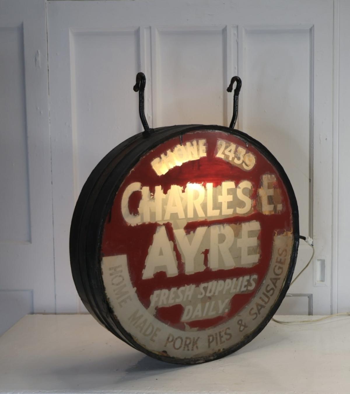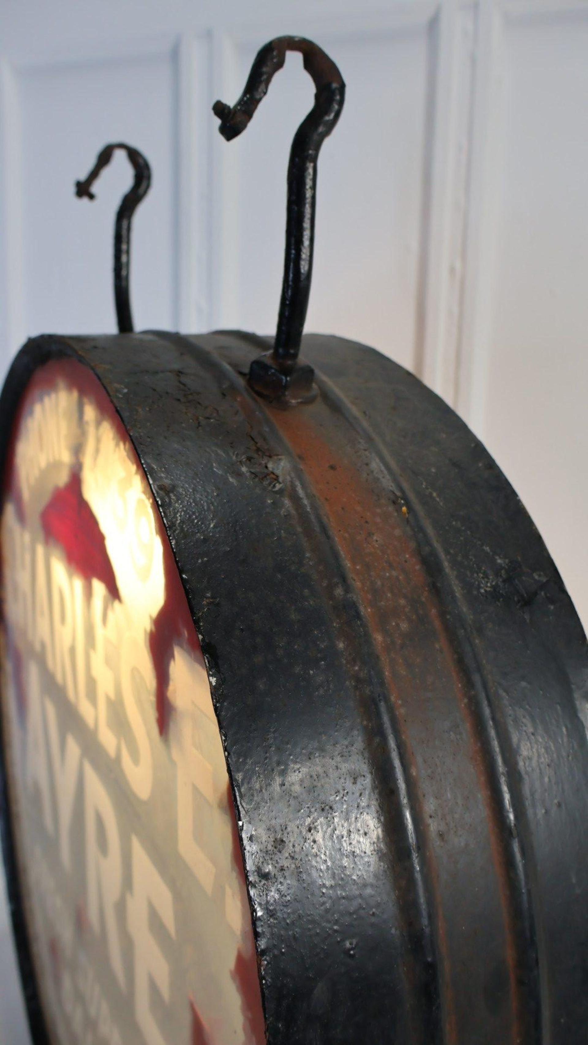 A 1920s double sided, illuminated glass, advertising hanging sign.