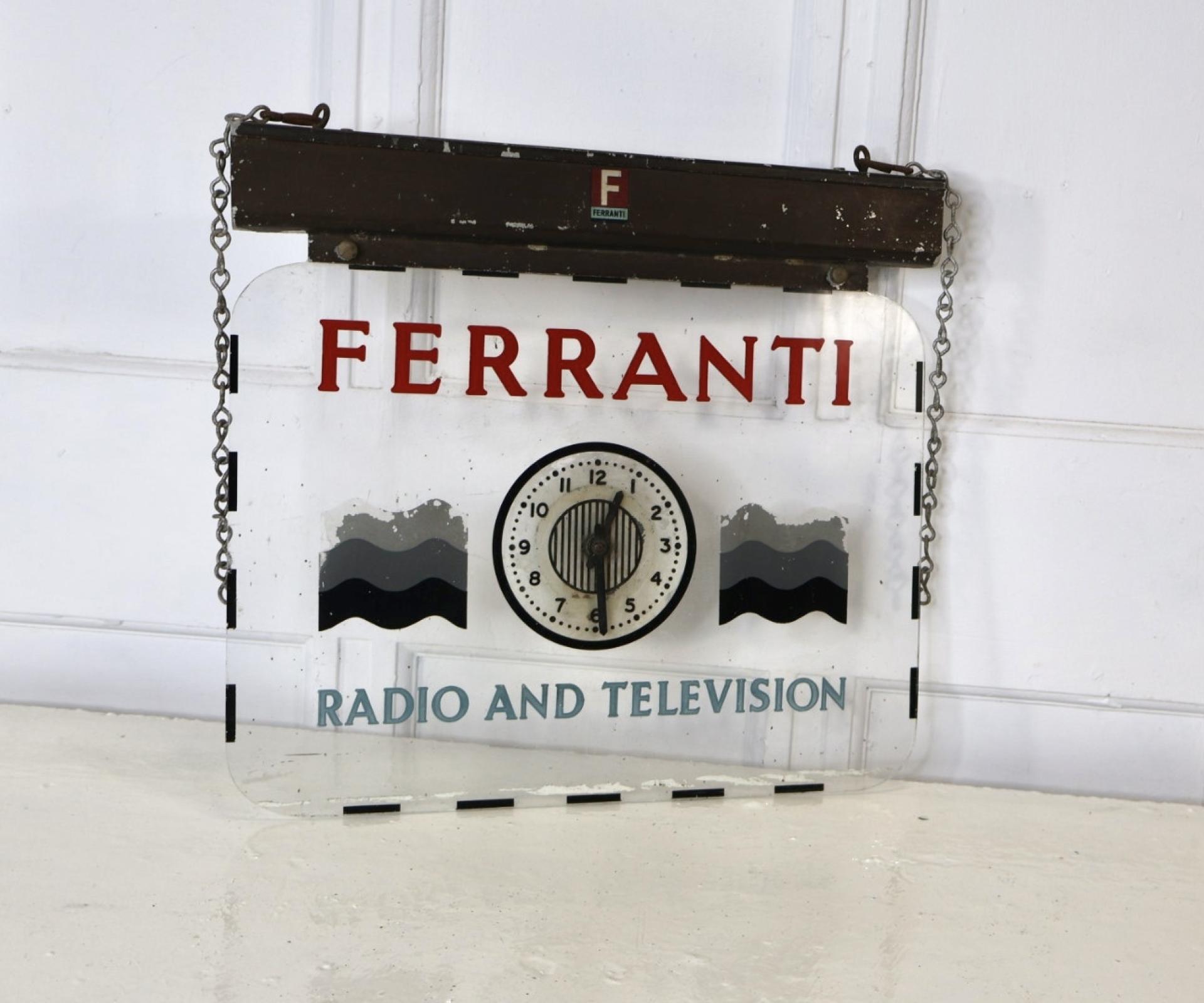 An unusual and somewhat rare illuminated advertising sign for Forrenti radios and television, complete with a central clock.