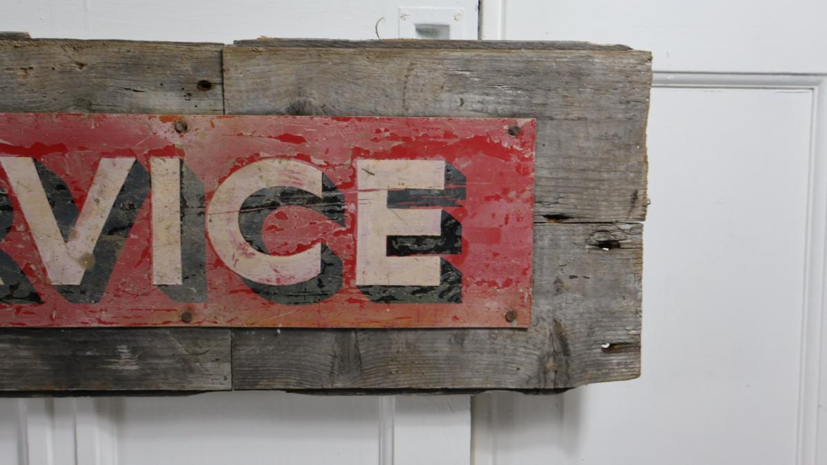 In good, solid condition the sign can be wall mounted or freestanding.