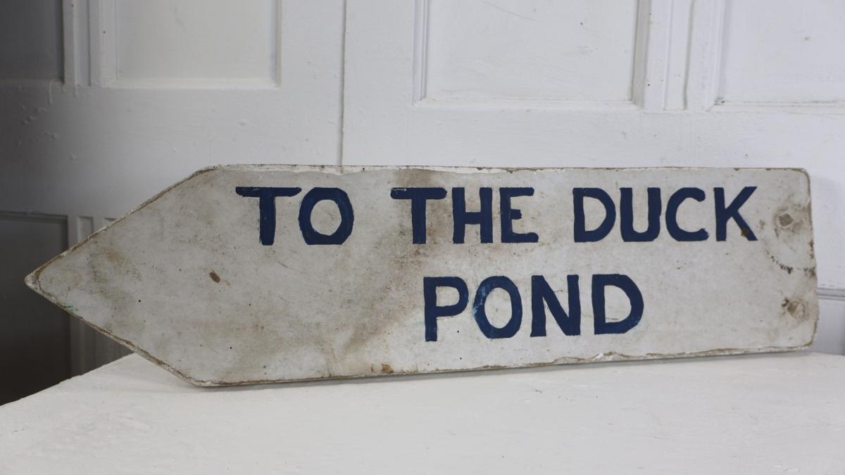 A pair of vintage, hand painted village signs, wonderfully naive and in good solid condition.