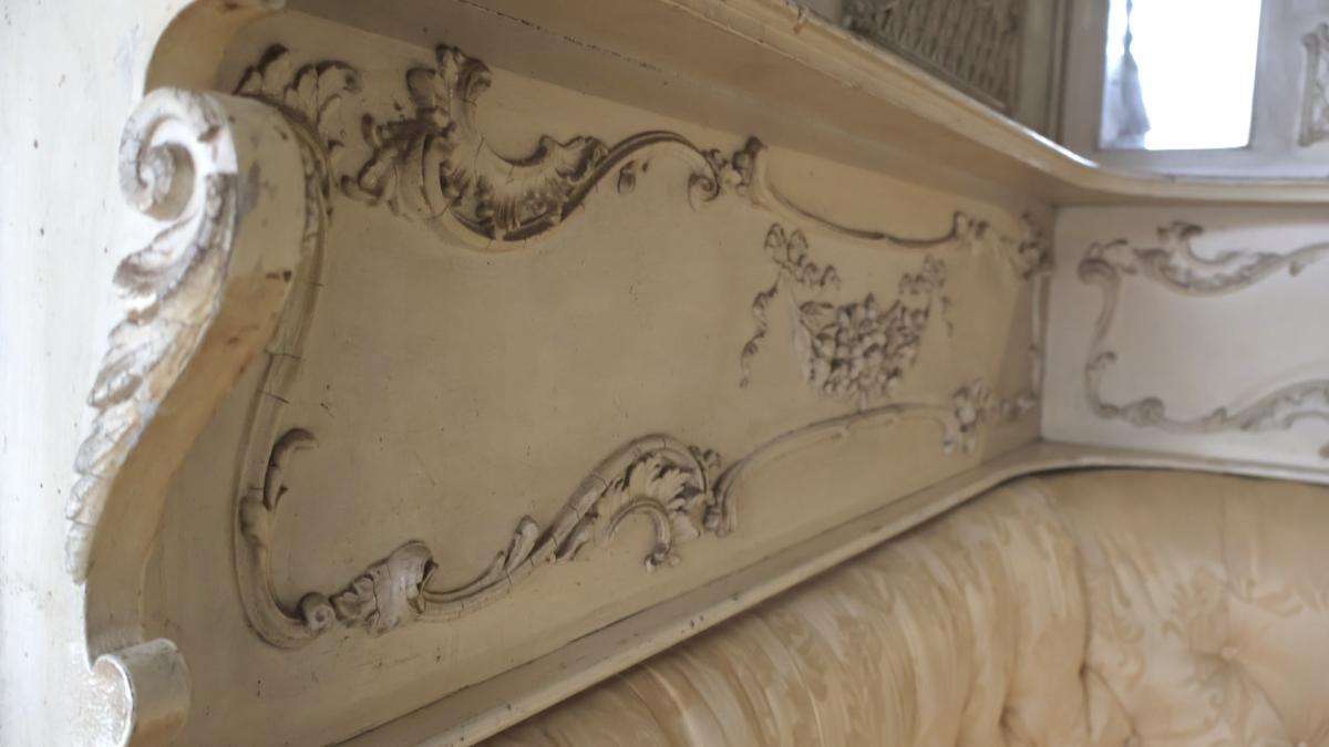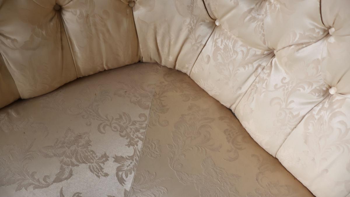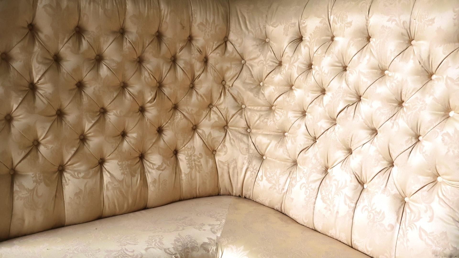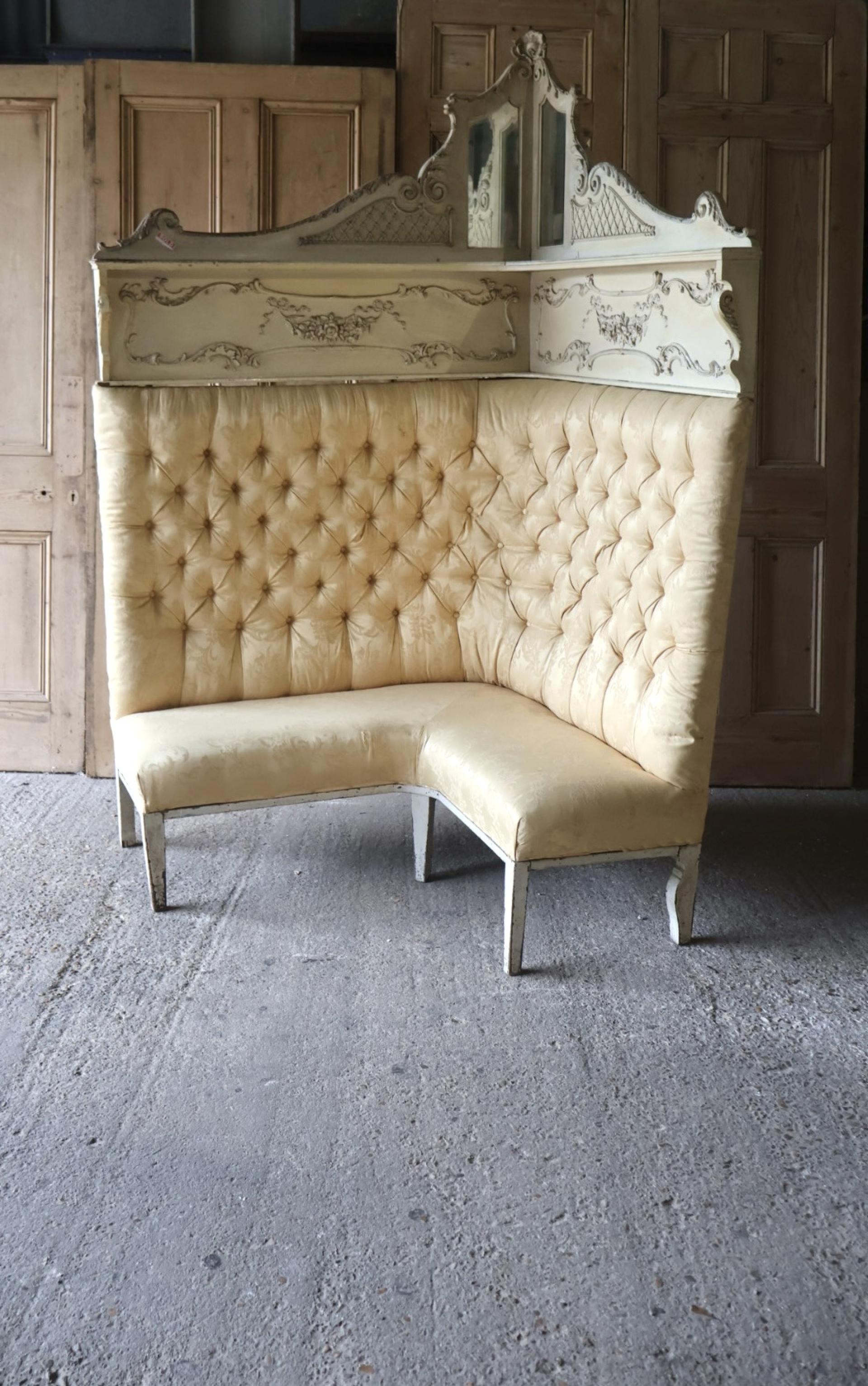 Salvaged from a French gentleman’s club in Paris, a corner button back sofa in its original yellow fabric.