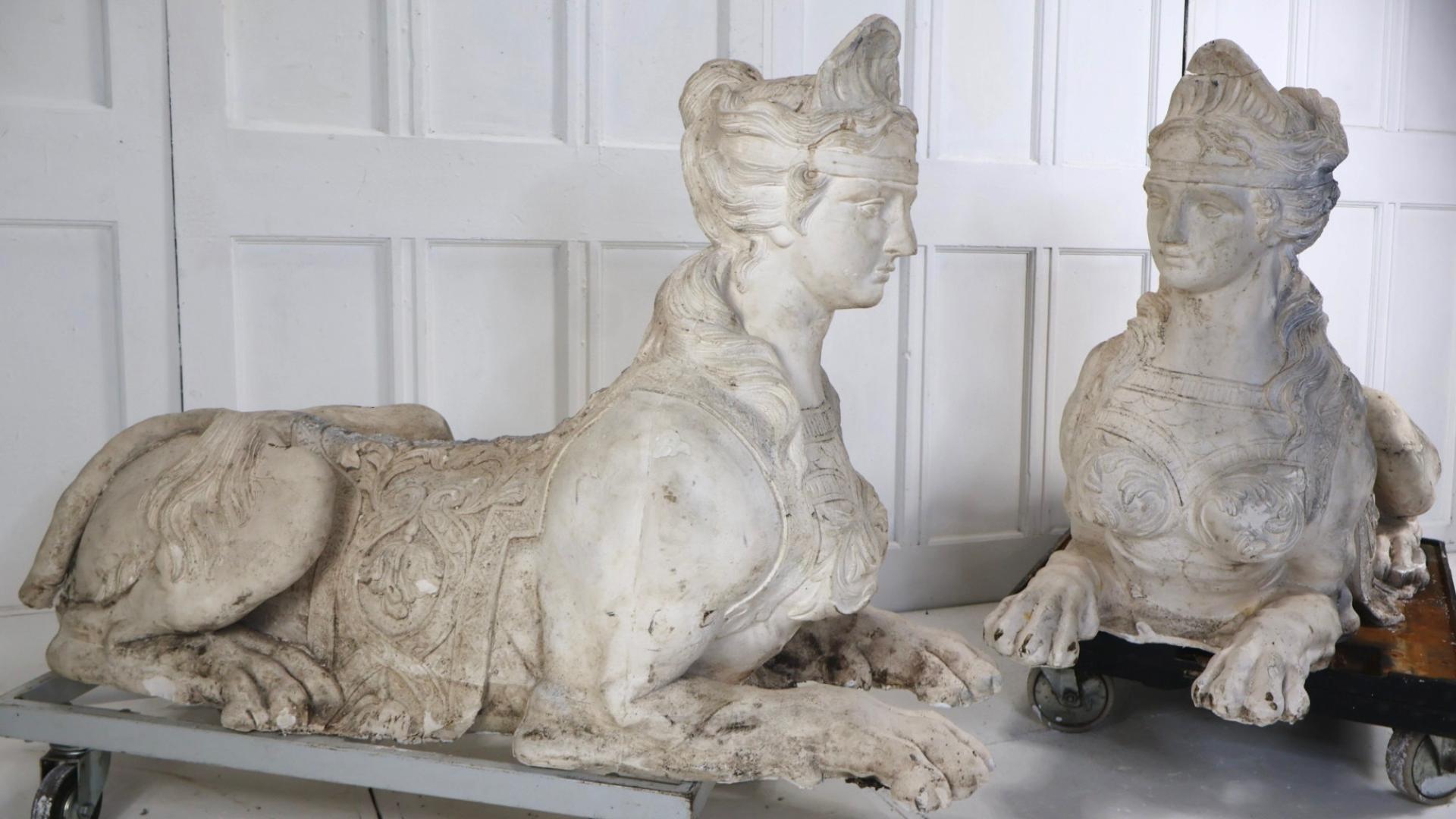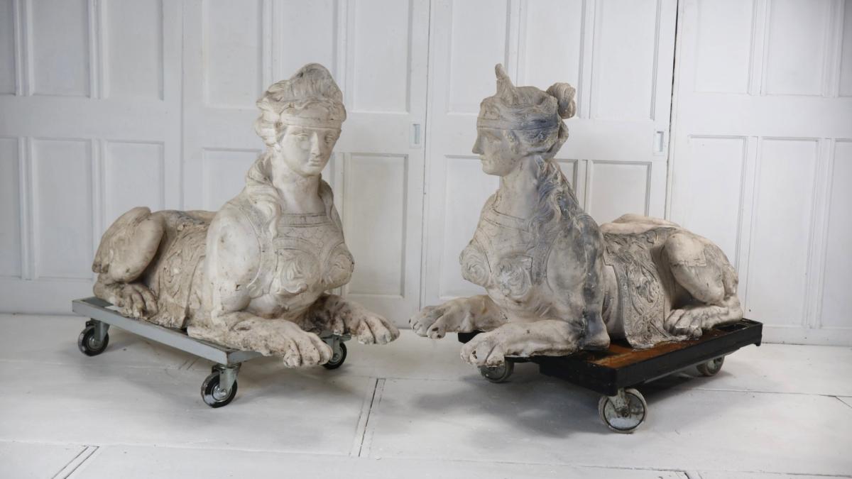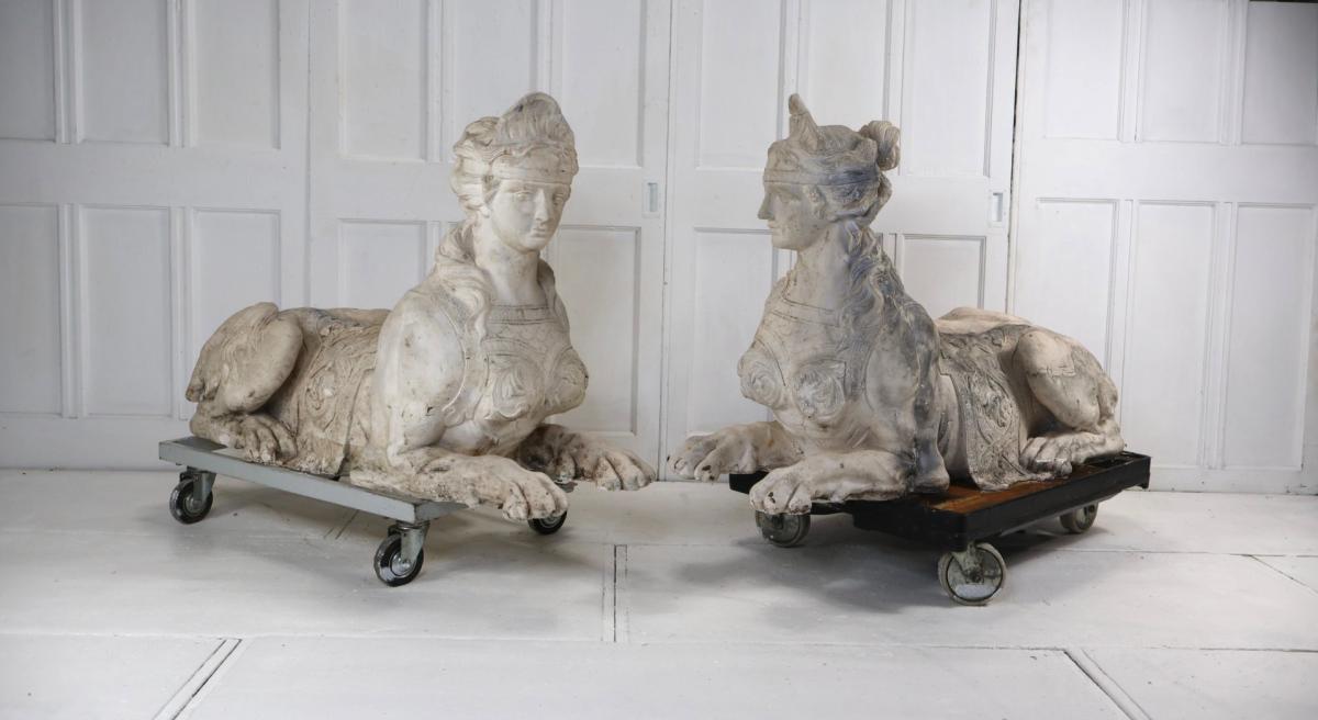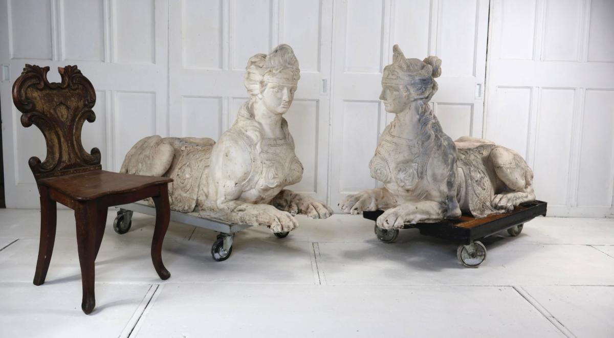 Appearing to be copies of Coade stone sphinx at Milton Hall which were installed around 1790.