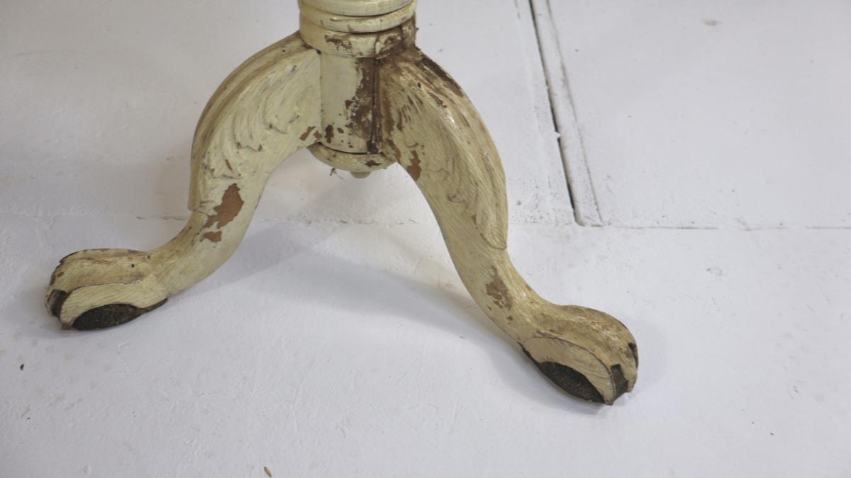 Sitting on 3 ball and claw feet, retaining its original old paint.