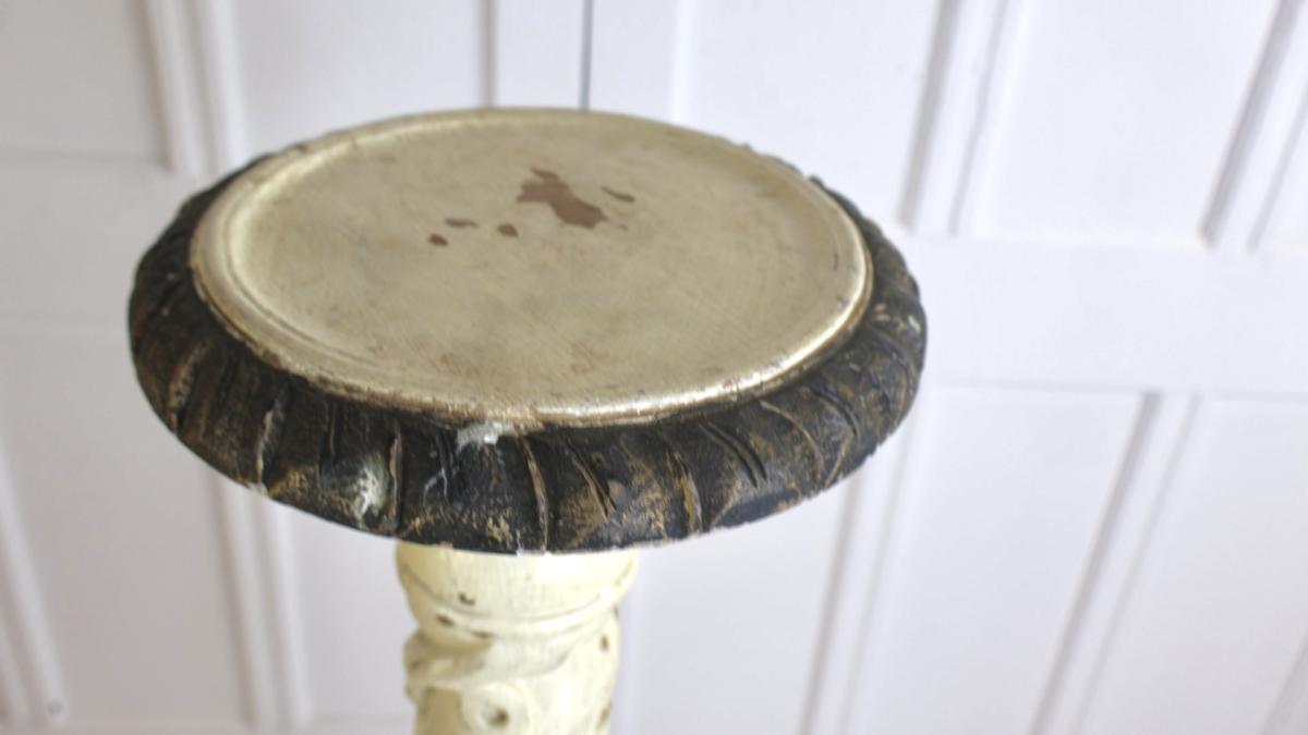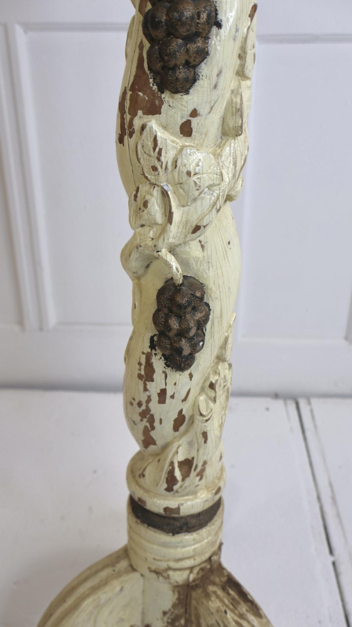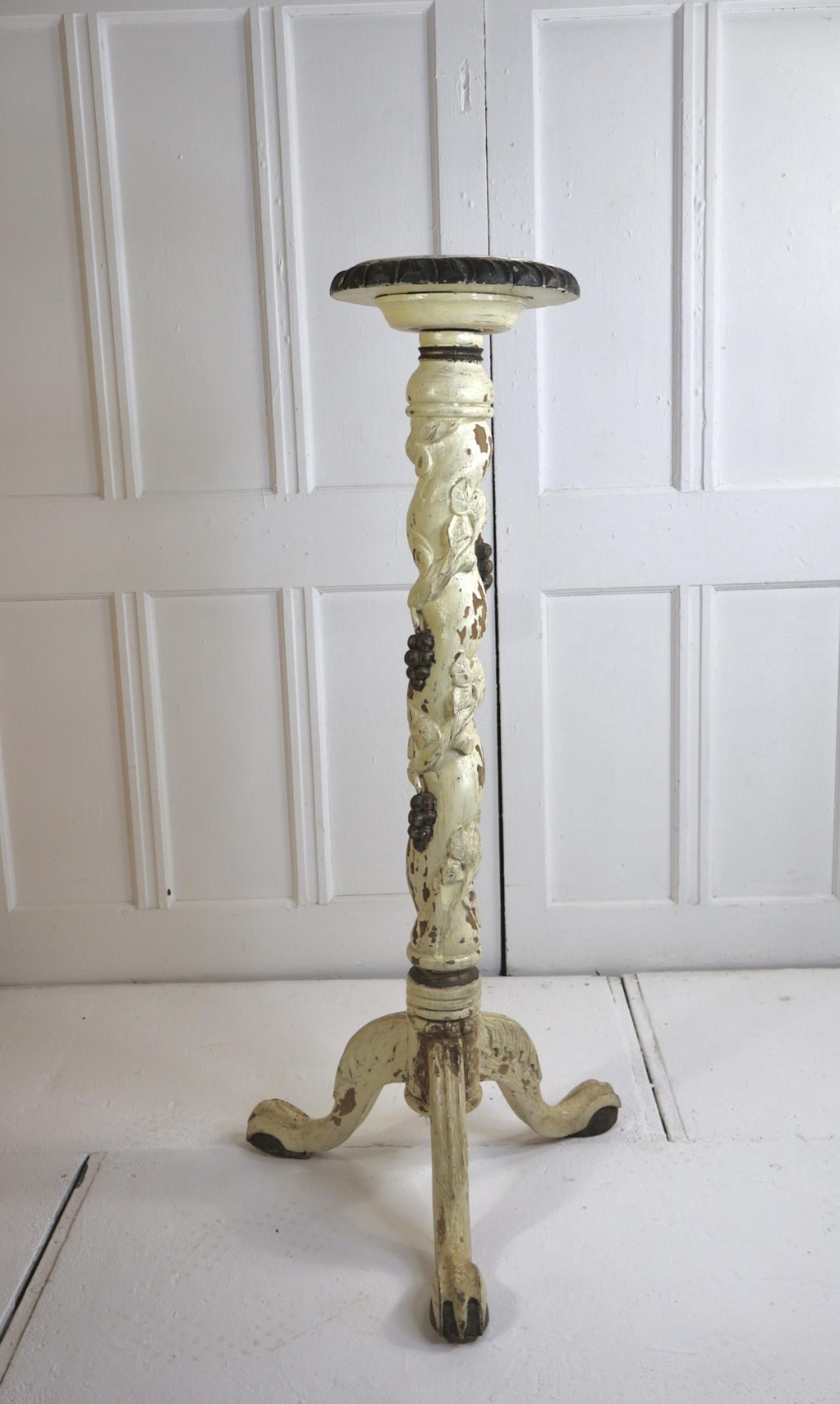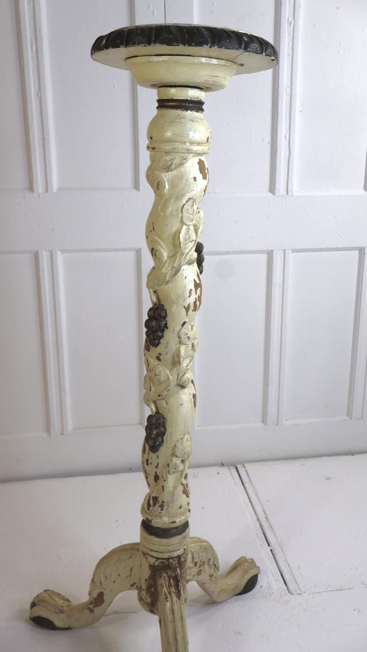 A nice example of a 19thc hand carved wooden plant stand, depicting vines and grapes.