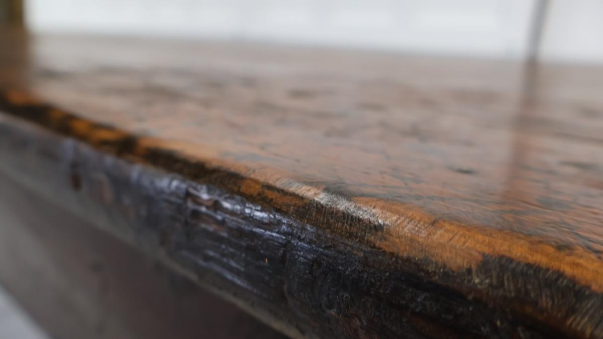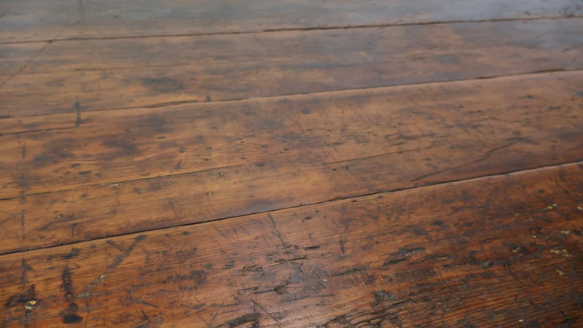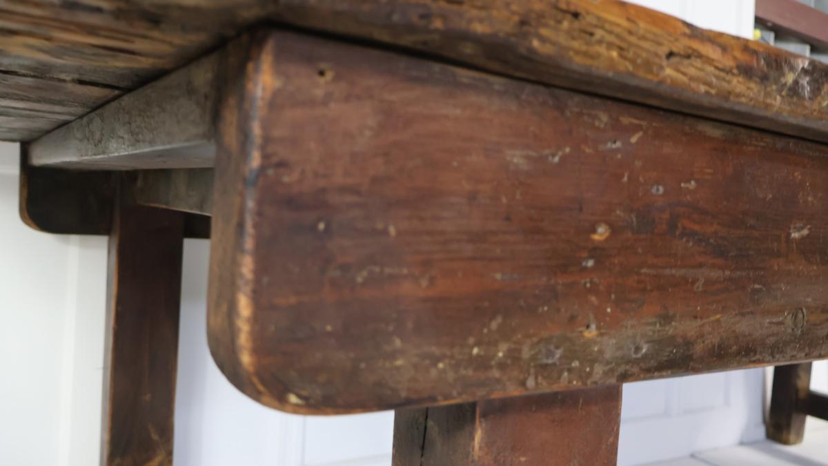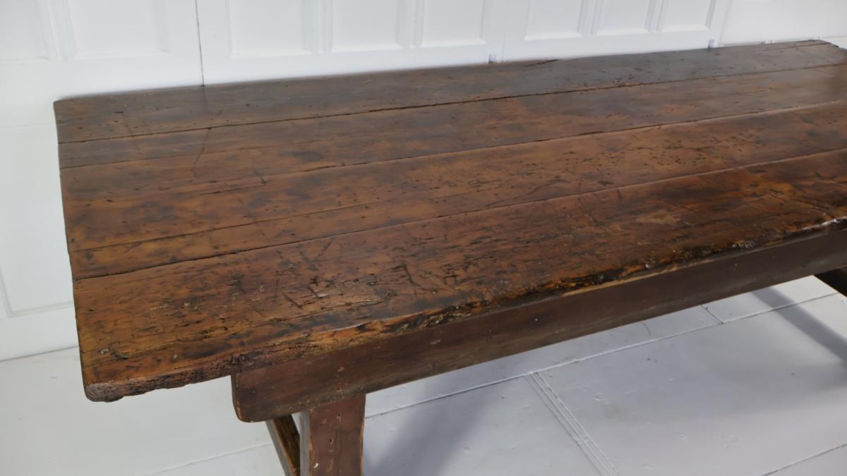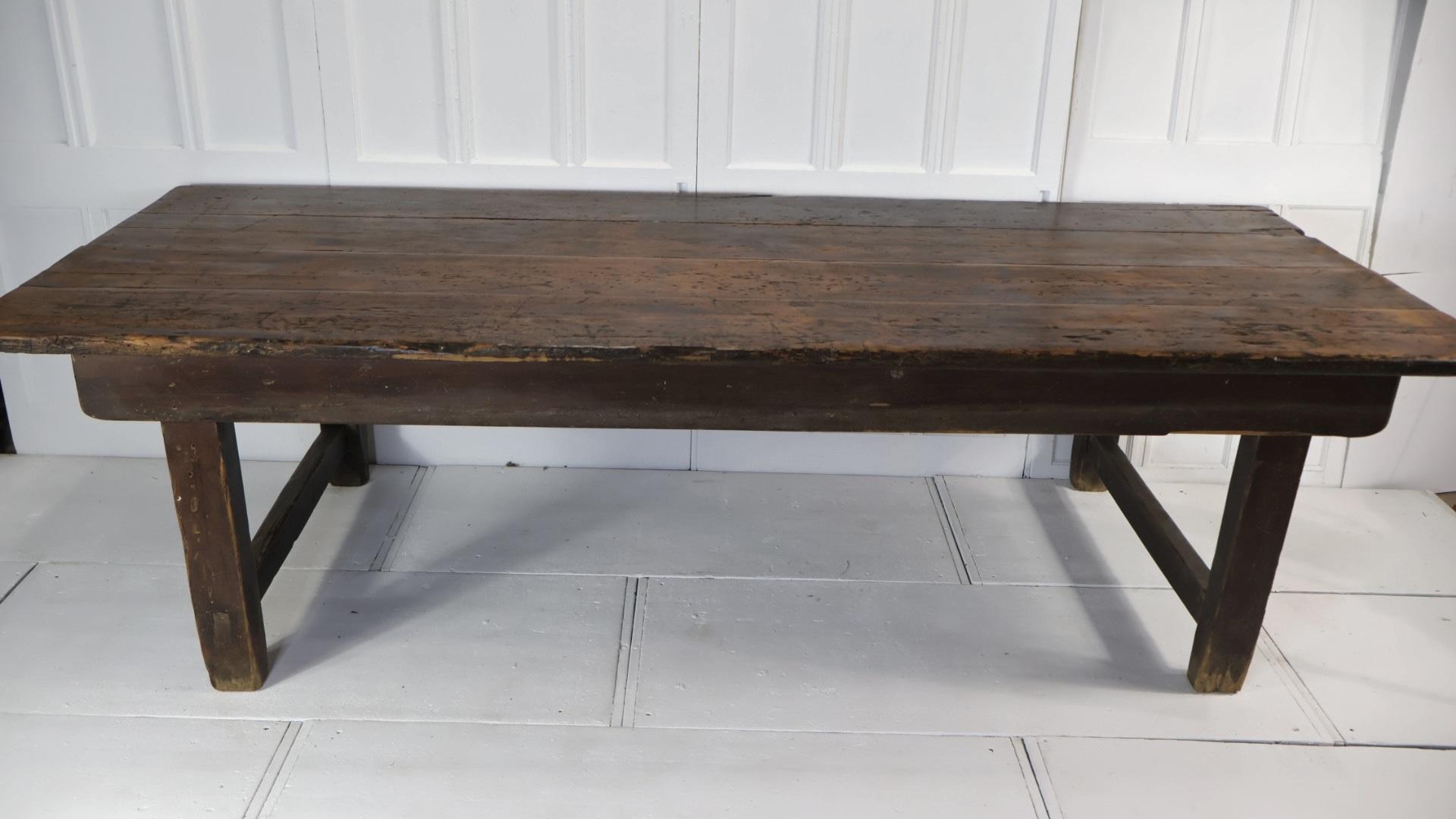 A monumental English farmhouse table, pitch pine and over 9 ft long.