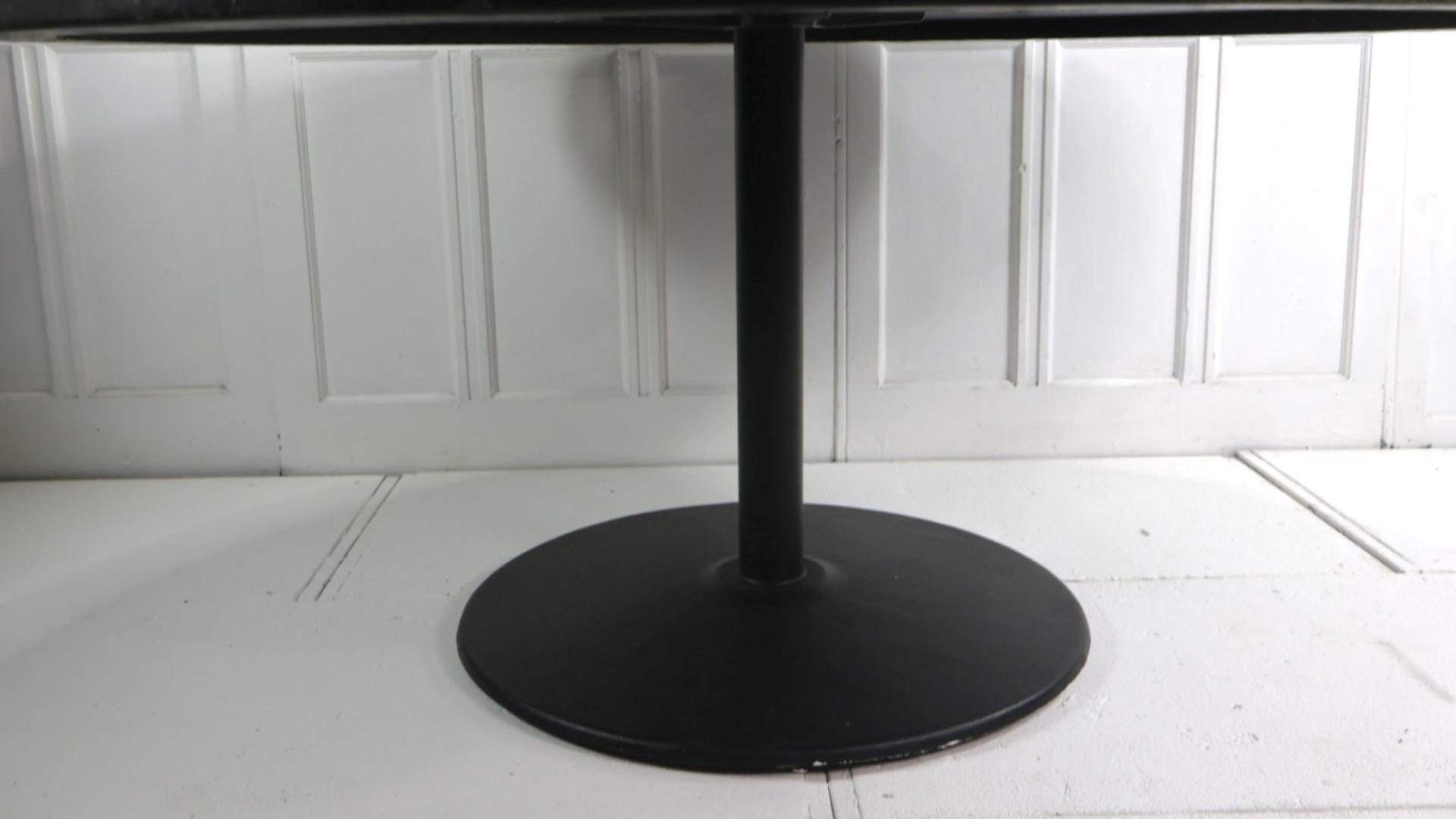The top sits on a heavy black cast circular base, removable from the top for ease of moving.