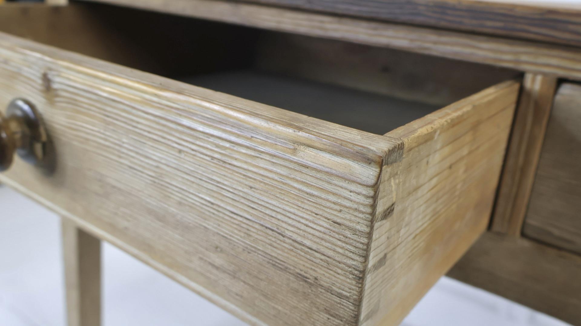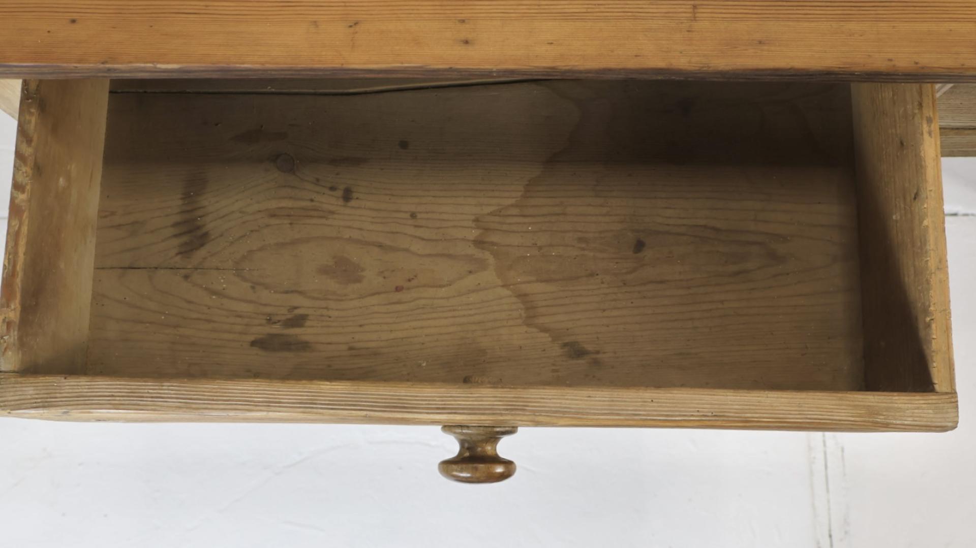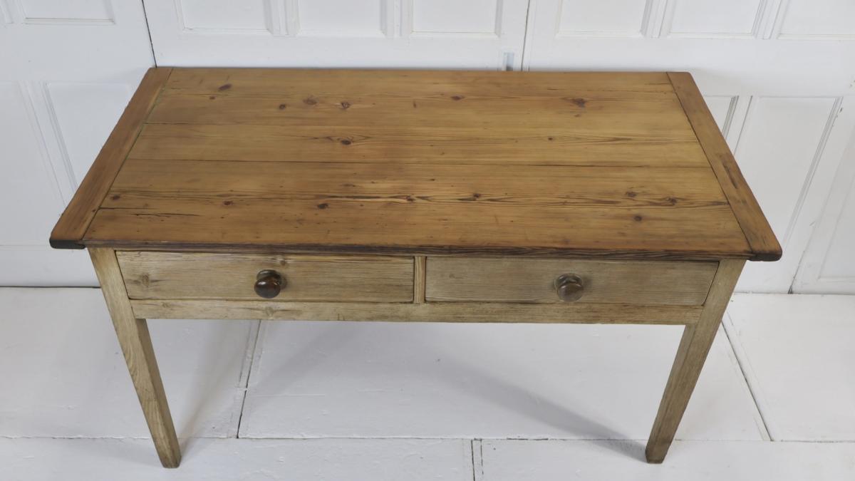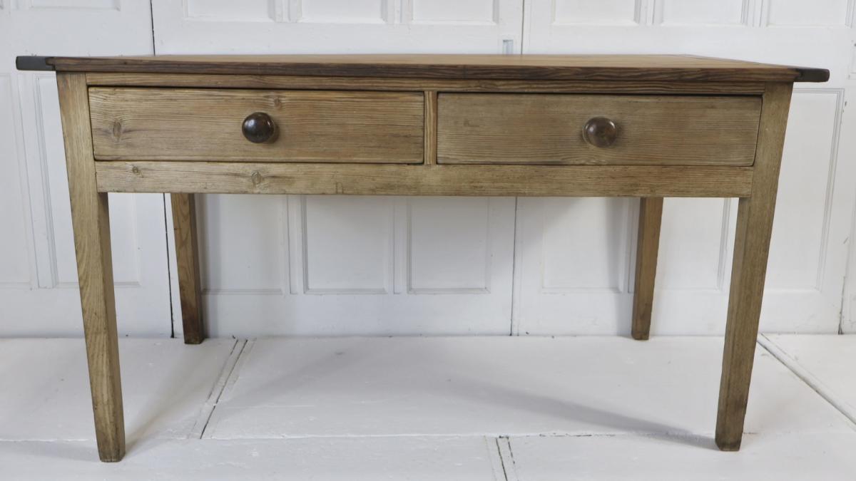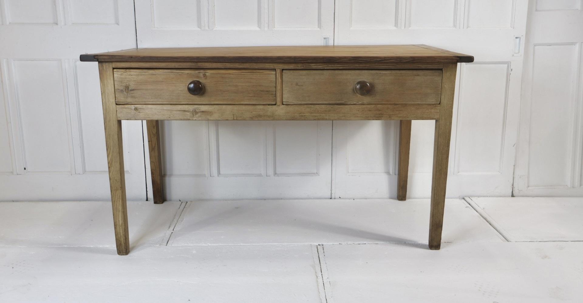 Comprising of a 2 plank top and 2 deep drawers retaining the original wooden knobs.