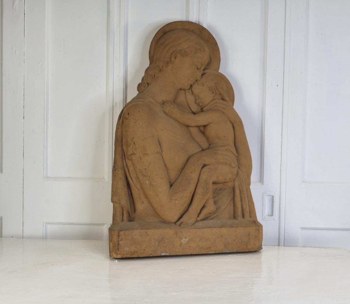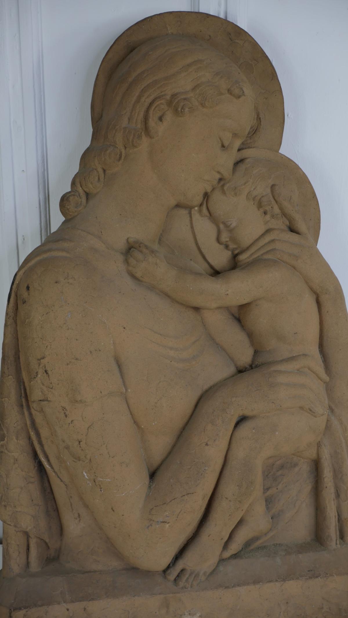 A large and incredibly good quality, terracotta cast of Madonna and child.