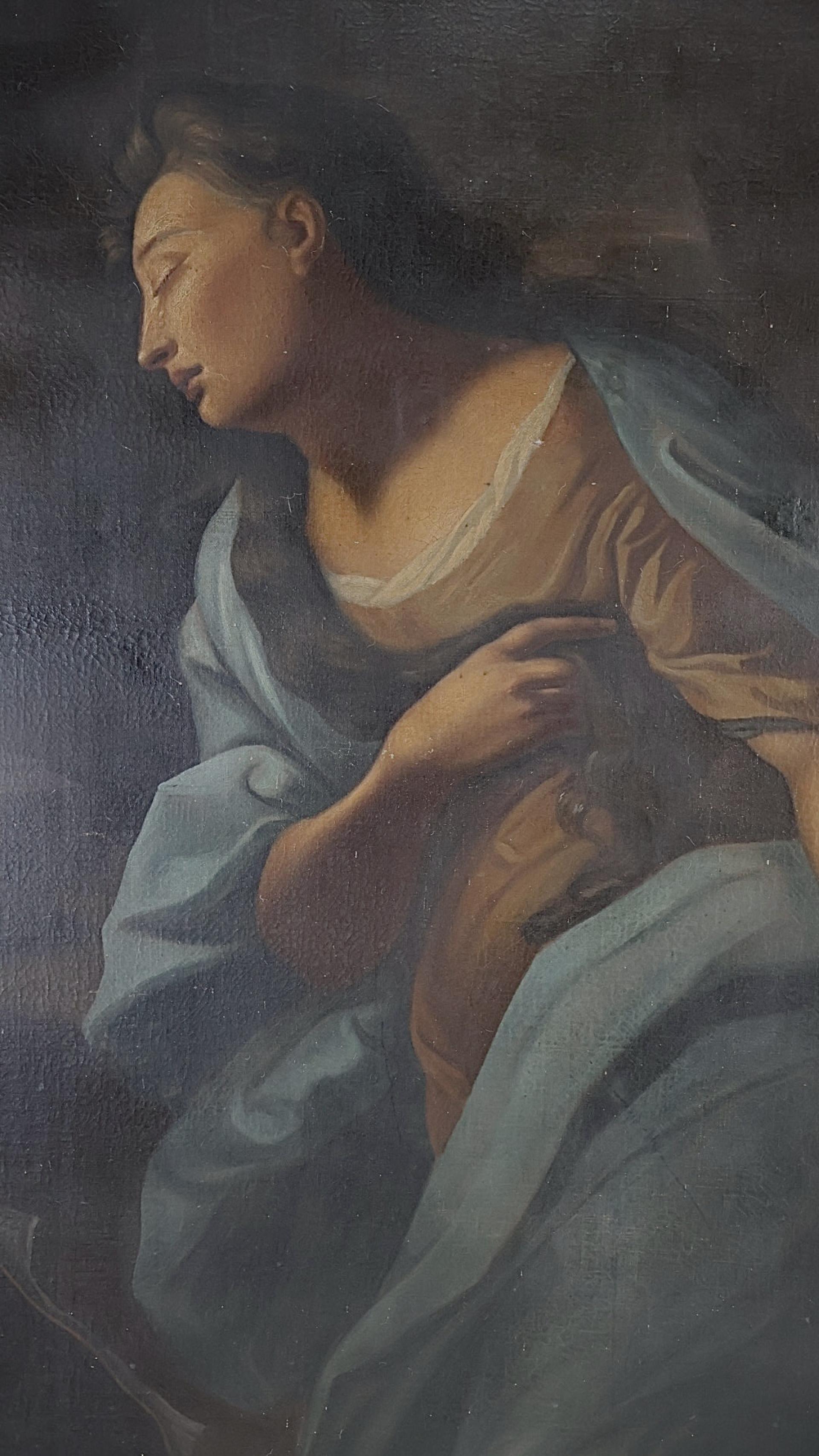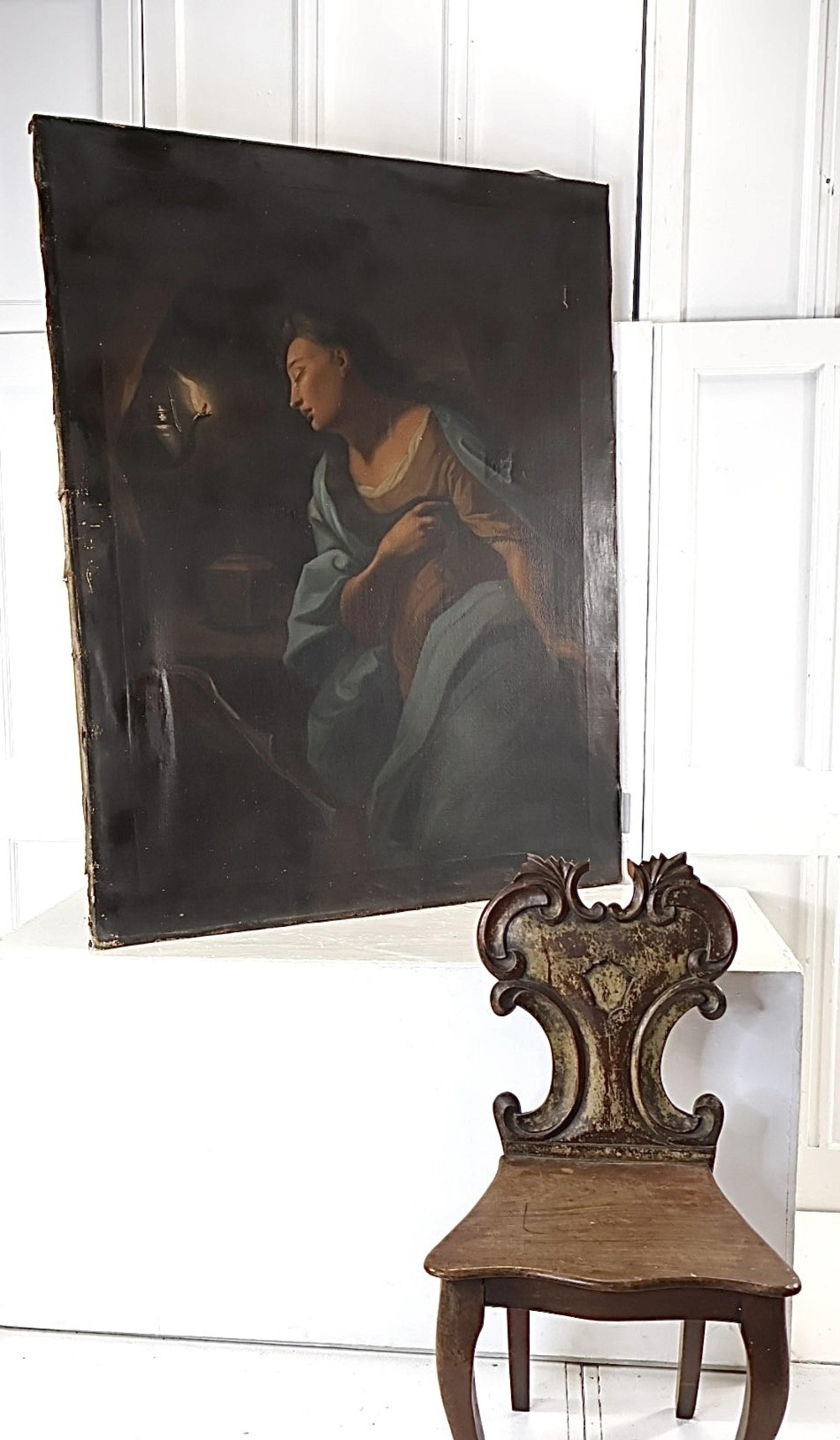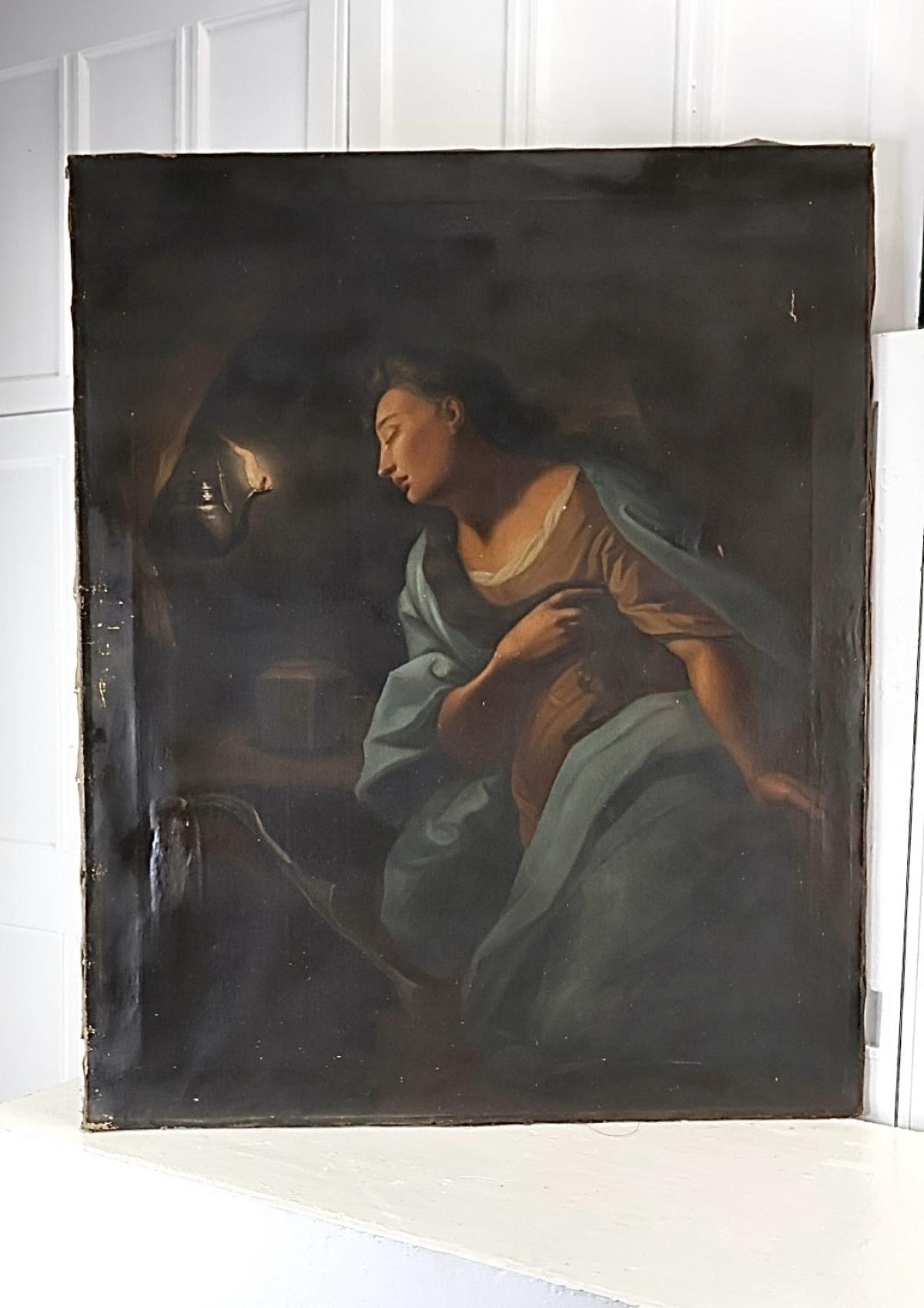 Of good scale and proportions, oil on canvas depicting The Penitent Magdalene by candlelight.