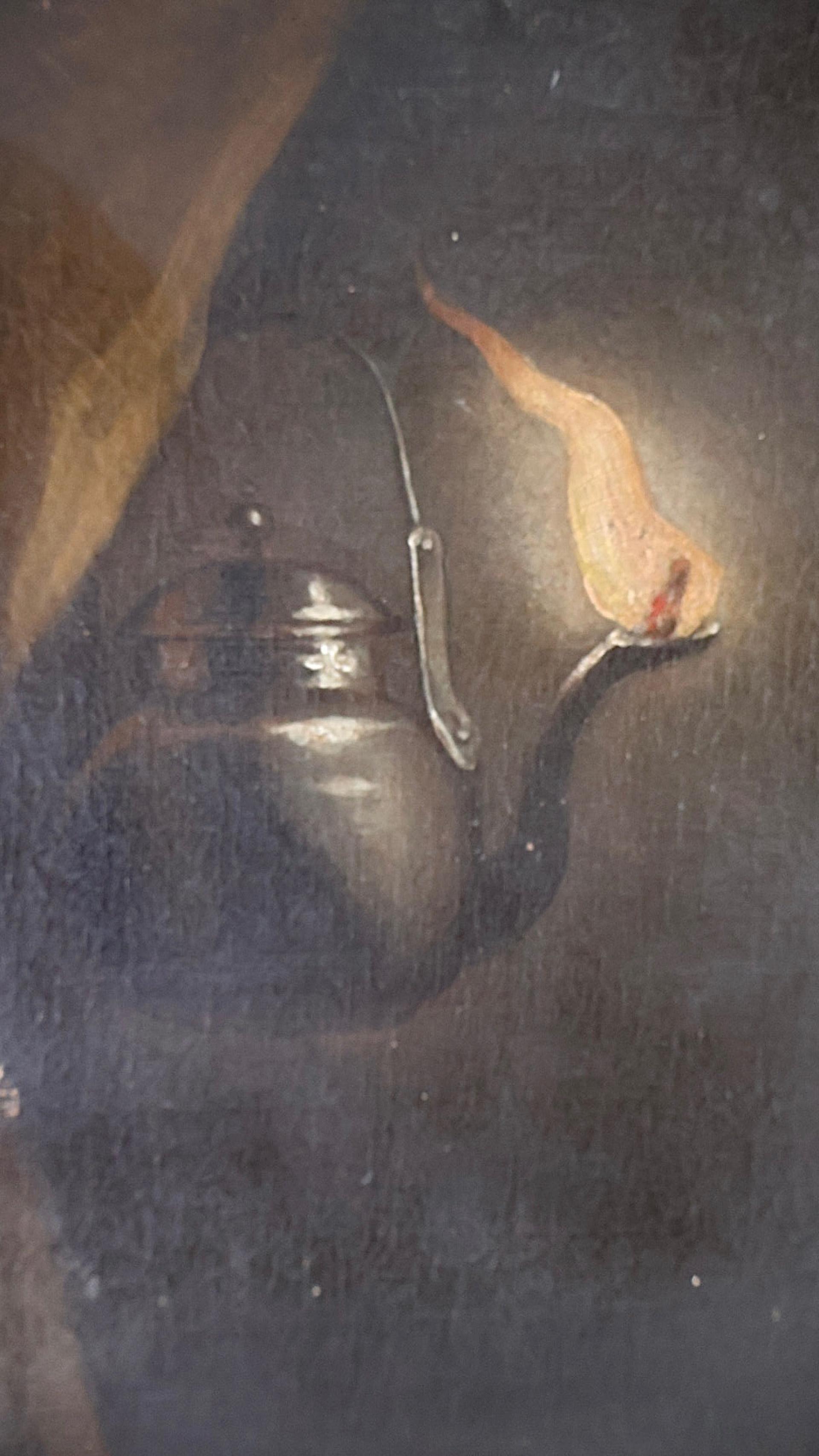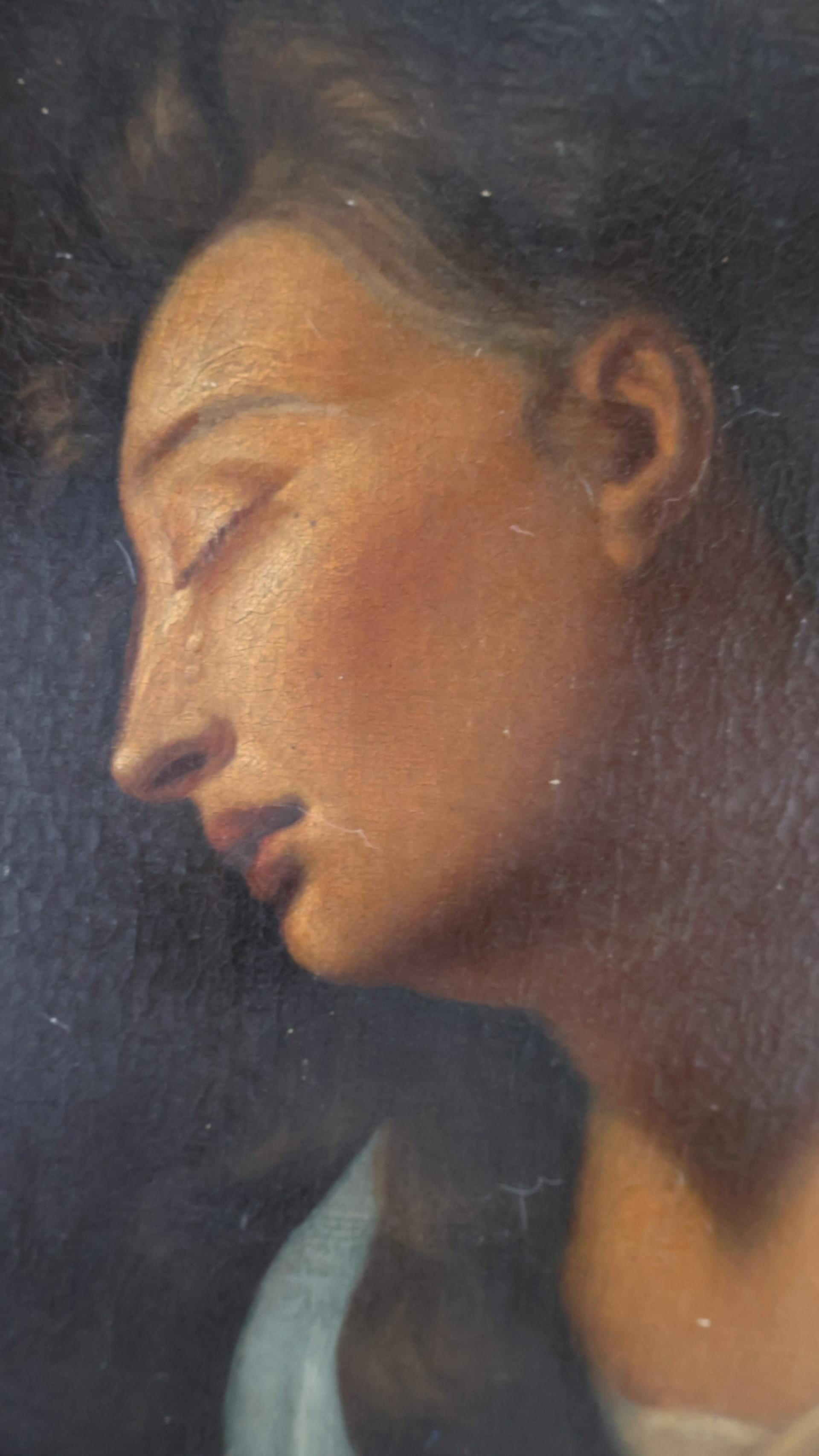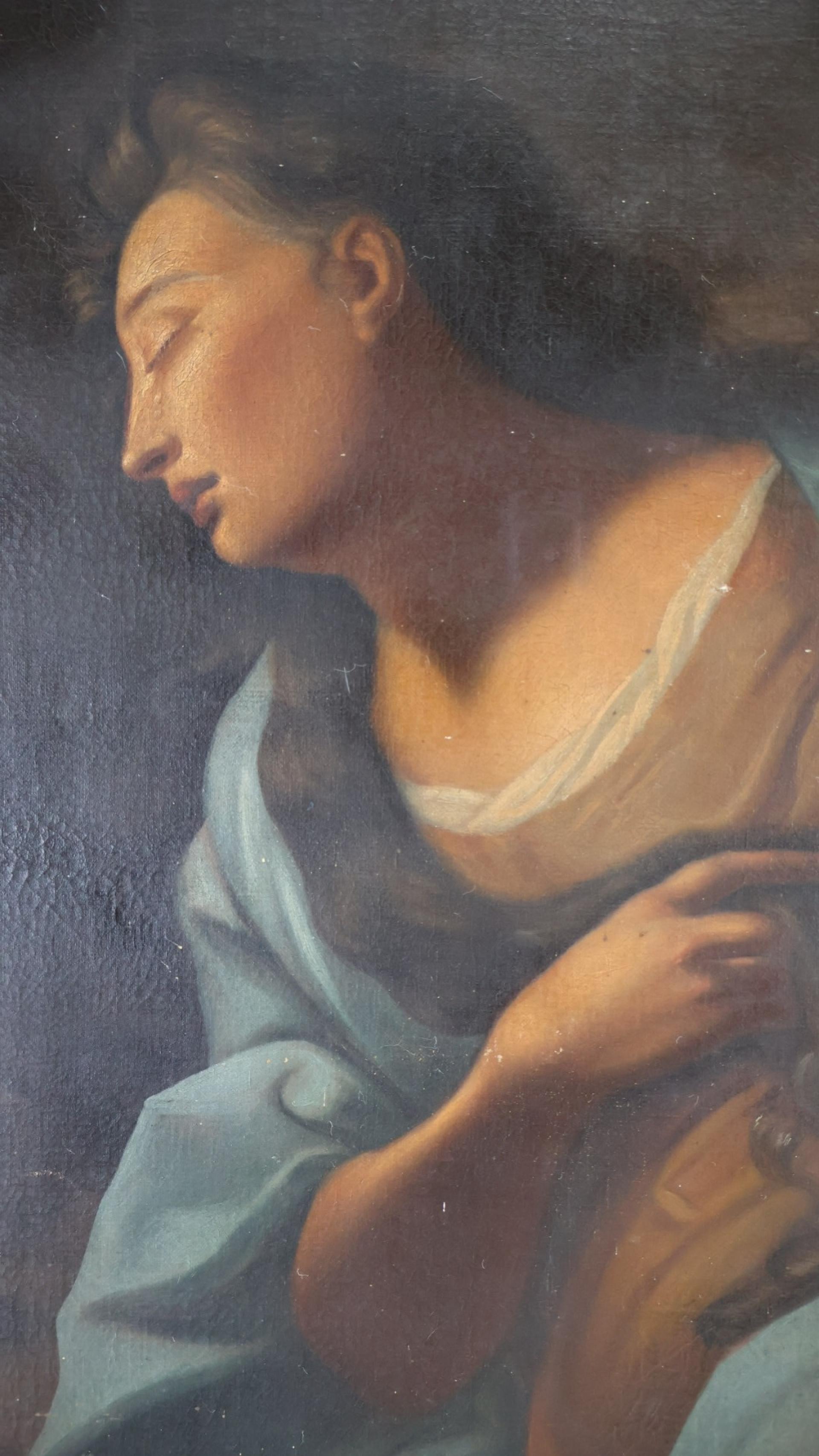 Of good scale and proportions, oil on canvas depicting The Penitent Magdalene by candlelight.