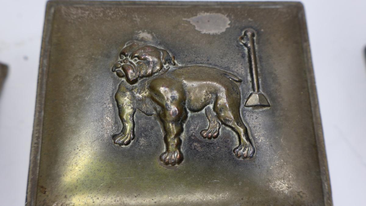 The images are of elephants crossing a bridge, an oriental dragon, a tethered bulldog, Asian landscape scene, locust, and an inlaid pattern.