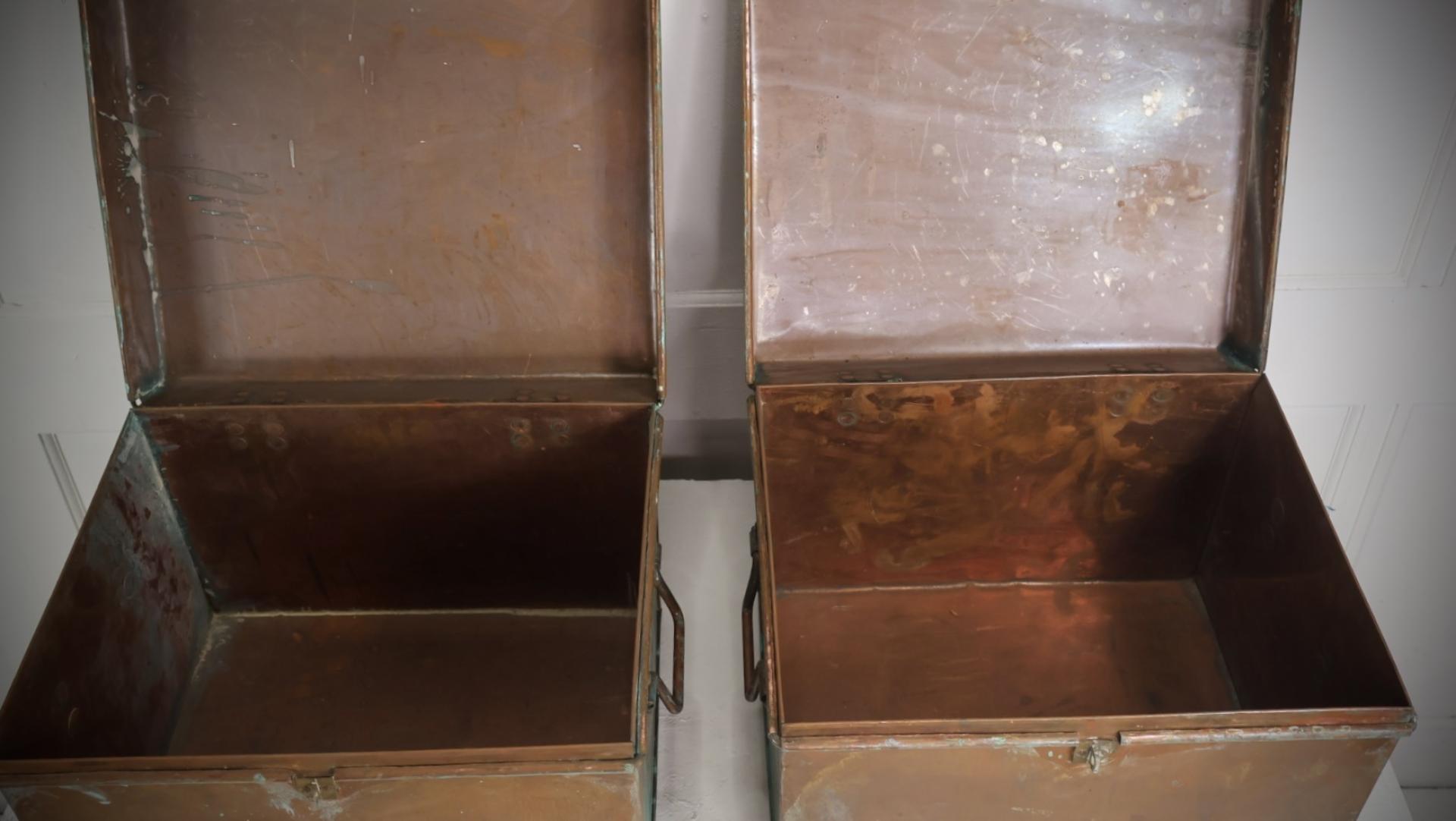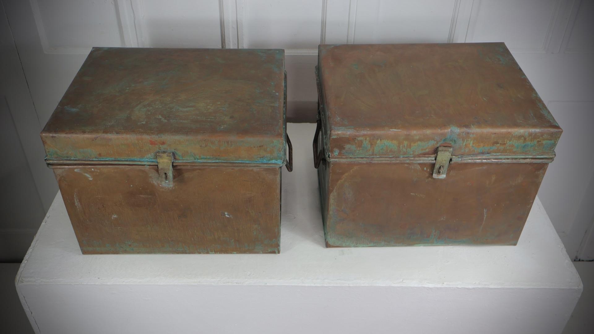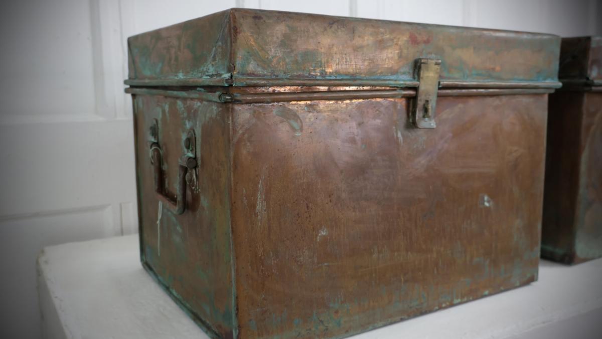 Very unusual, early turn of the century solid copper trunks, each weighing approximately 13kg.