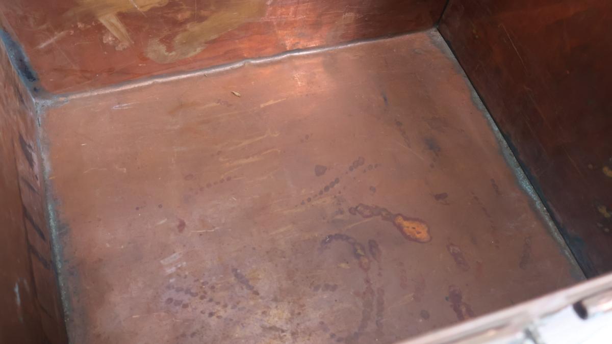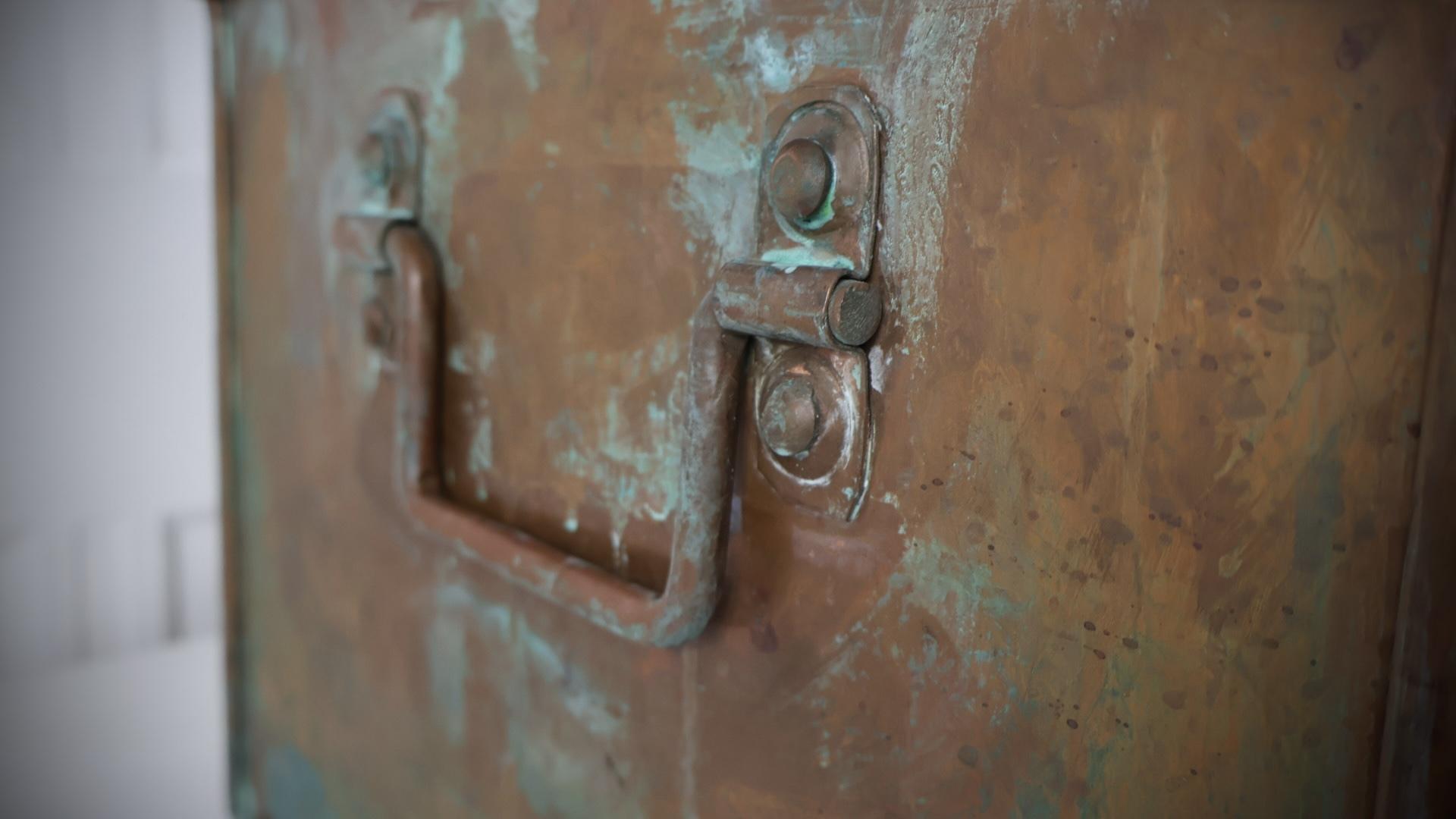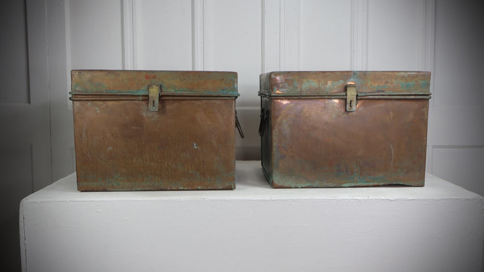 Very unusual, early turn of the century solid copper trunks, each weighing approximately 13kg.