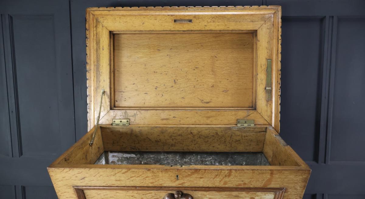 Hobbs & Co of London, c1860 and of royal proportions, an early Victorian, oak sarcophagus shaped wine cooler.